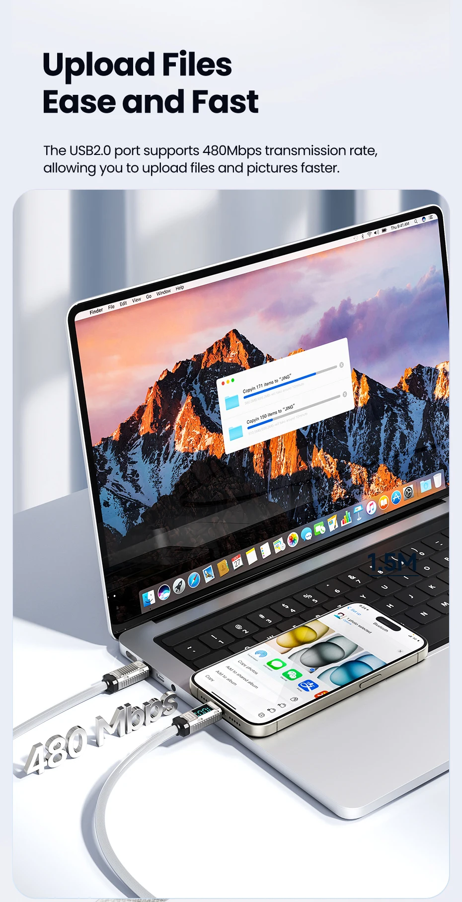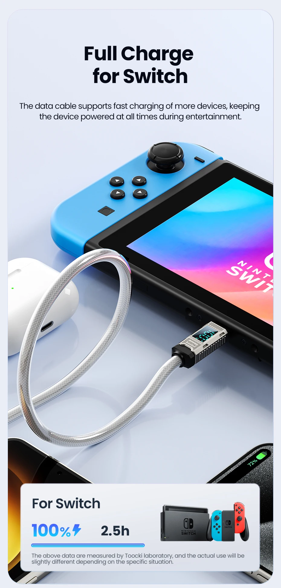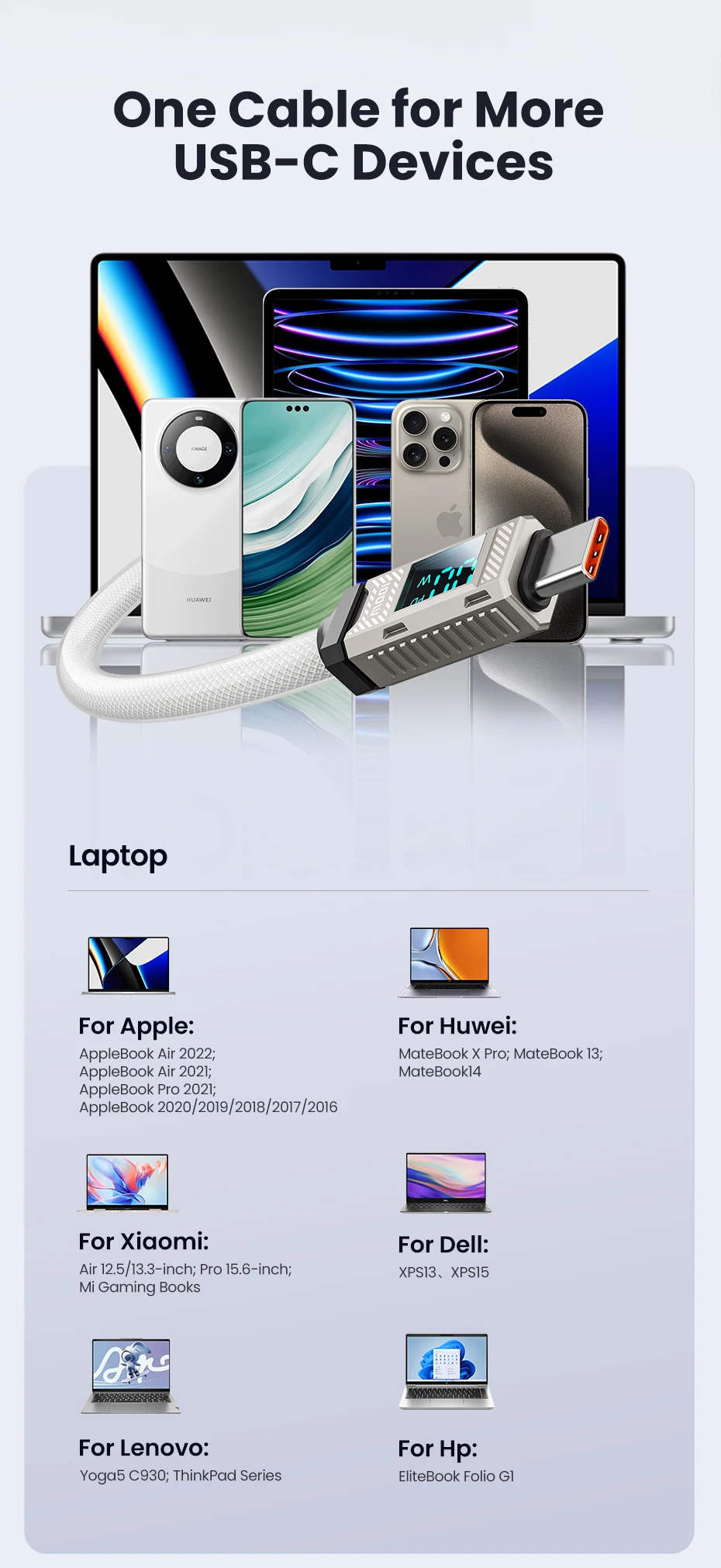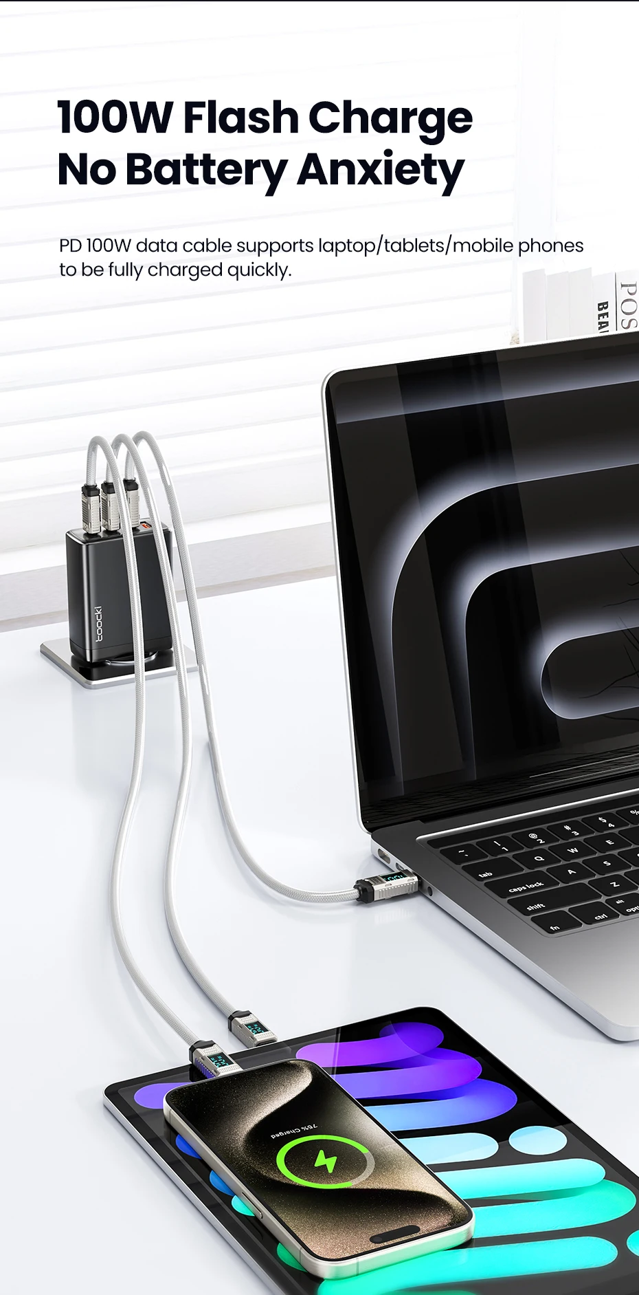 ✅Carga flash de 100 W: el cable de datos PD de 100 W admite que las computadoras portátiles/tabletas/teléfonos móviles se carguen completamente rápidamente.