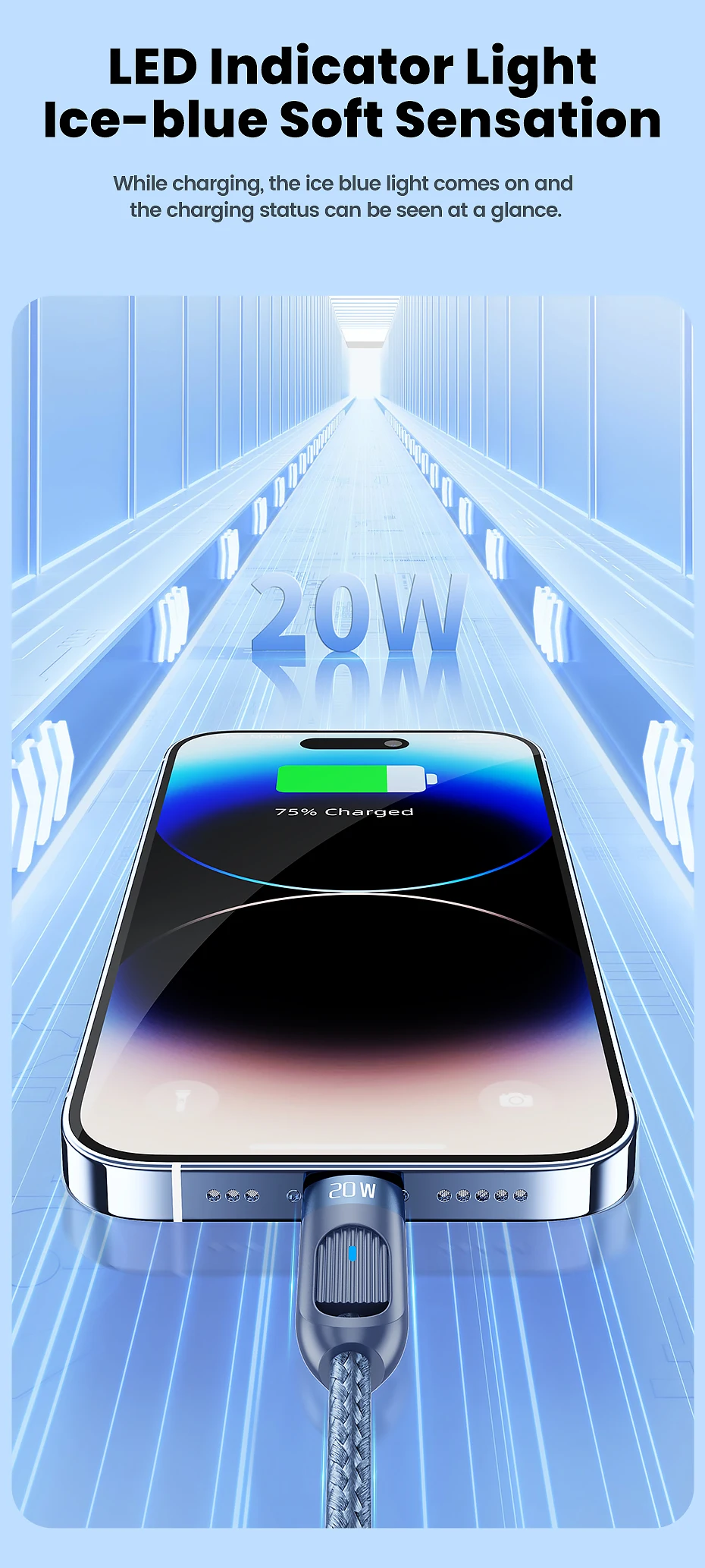 Mientras se carga, la luz azul hielo se enciende y el estado de carga se puede ver de un vistazo.