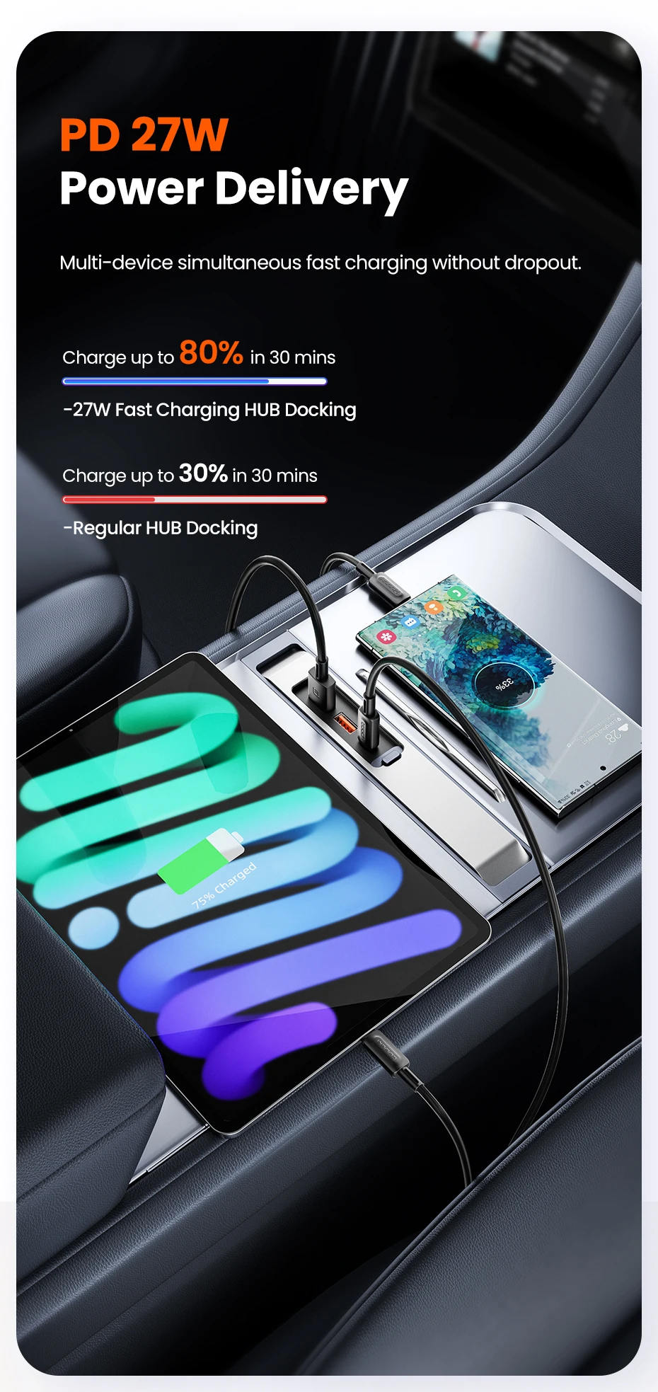 Comprar Toocki PD 27W USB HUB cargador rápido tipo C Hub estación de acoplamiento USB Shunt Hub para Tesla modelo 3 Y 3 puertos alimentado divisor Extens