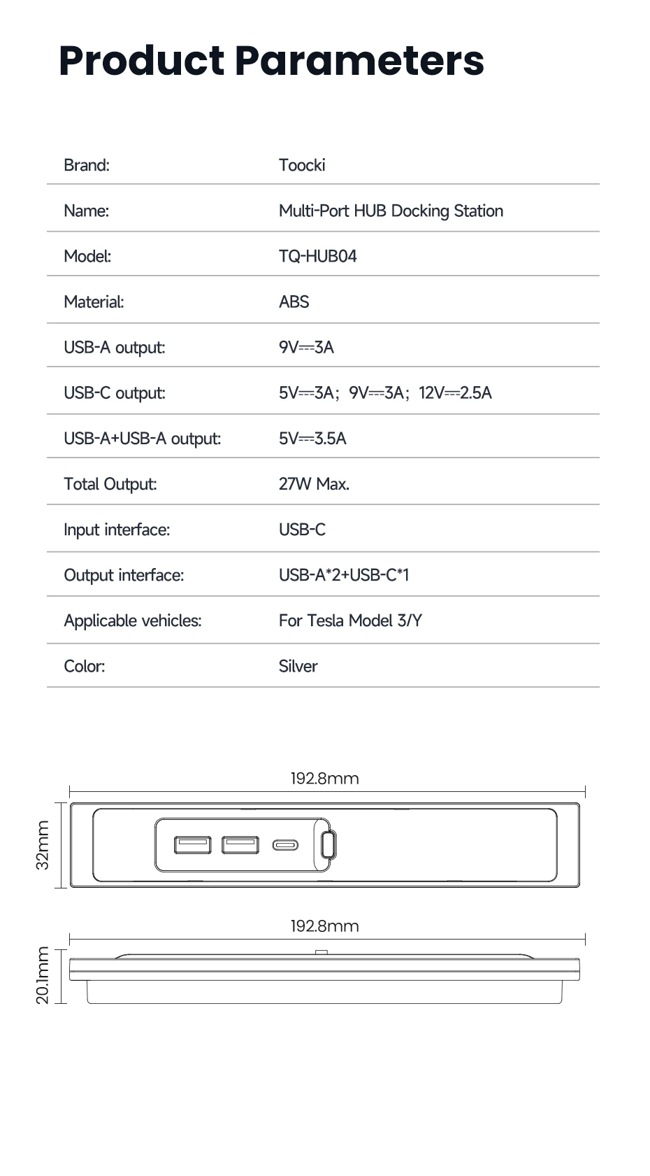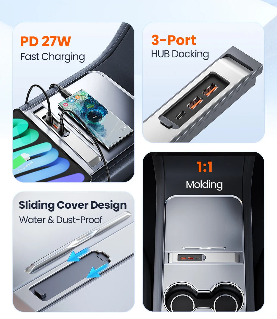 ✅Multi-Port HUB Docking Station Fit For Tesla Model 3/Y