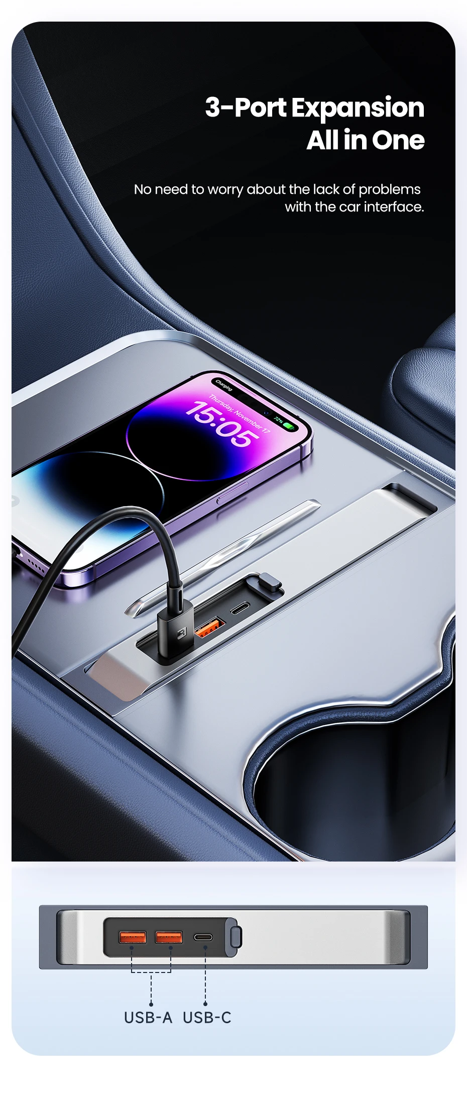 ✅3-Port HUB Docking:3-Port Expansion All in One ,No need to worry about the lack of problems with the car interface.