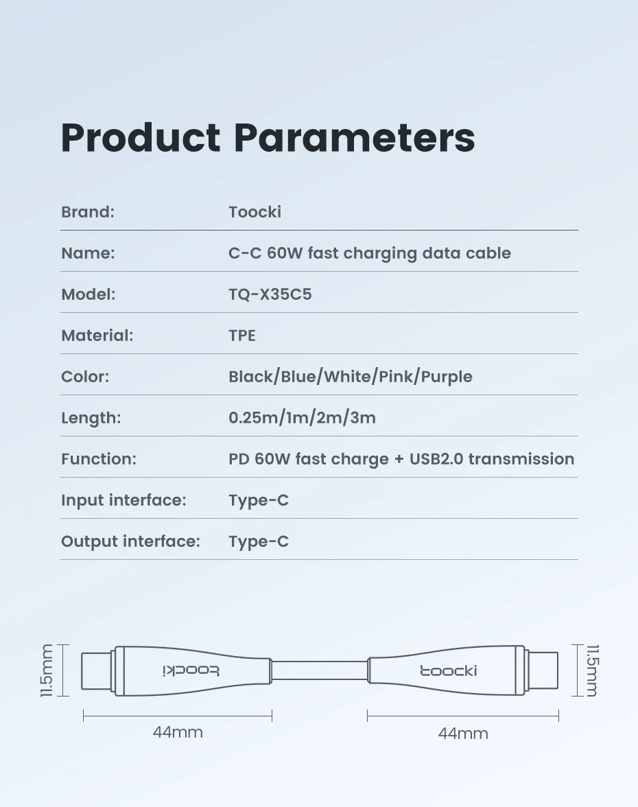 Toocki PD 60W tipo C a tipo C Cable para iPhone 15 16 Pro Max 3A carga rápida USB C a USB C Cable para Xiaomi 13 12 Samsung S23