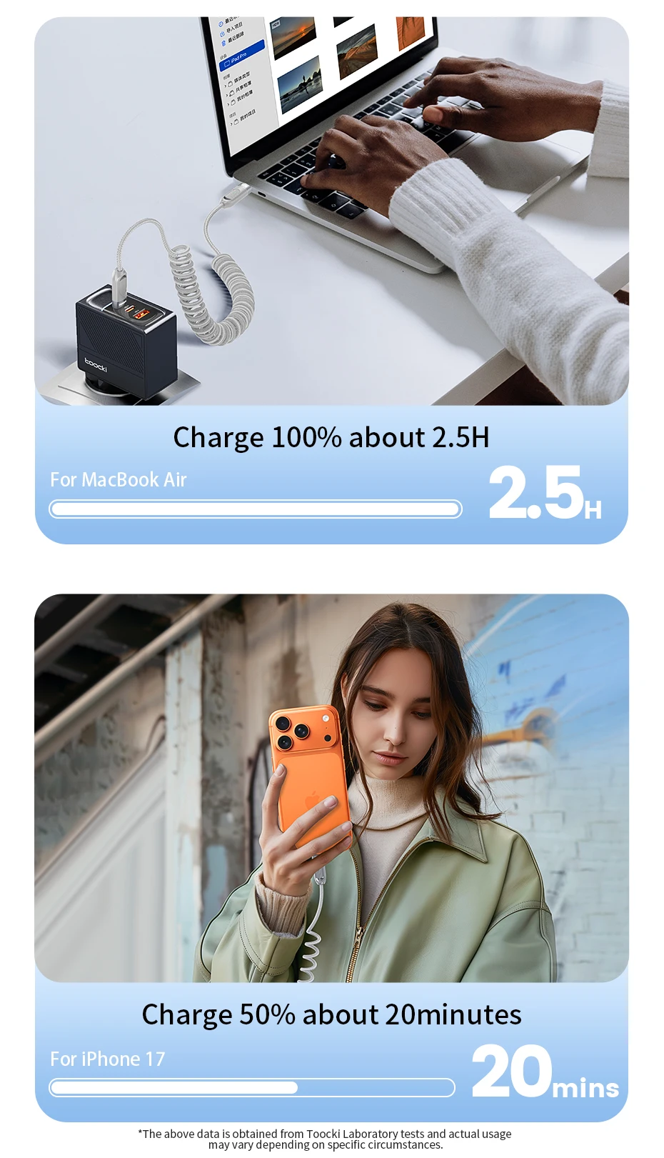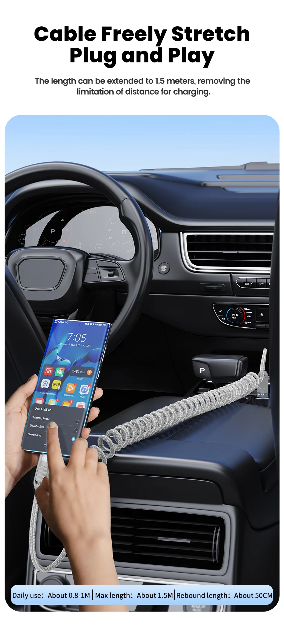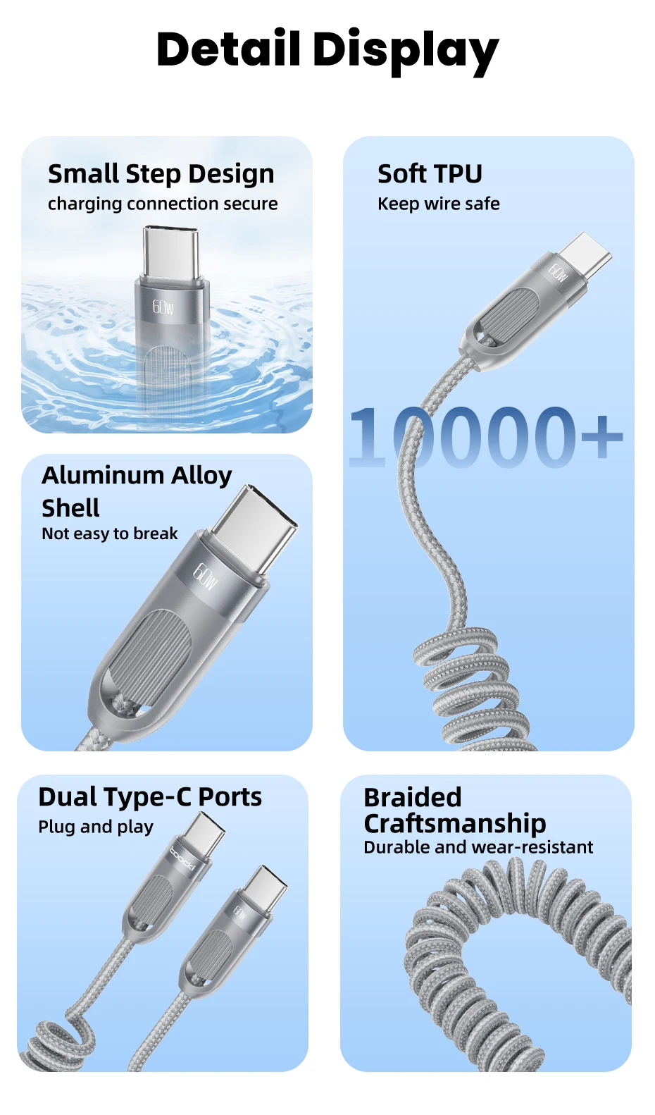 Toocki PD 60W USB C a USB C Cable de carga rápida tipo C Cable USB de resorte para coche para iPhone 17 16 15 Pro Max Xiaomi Samsung S23 SS24