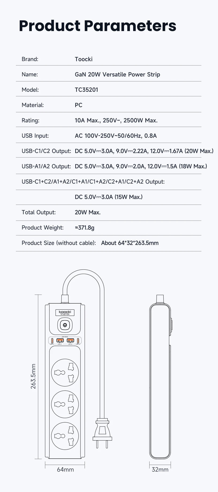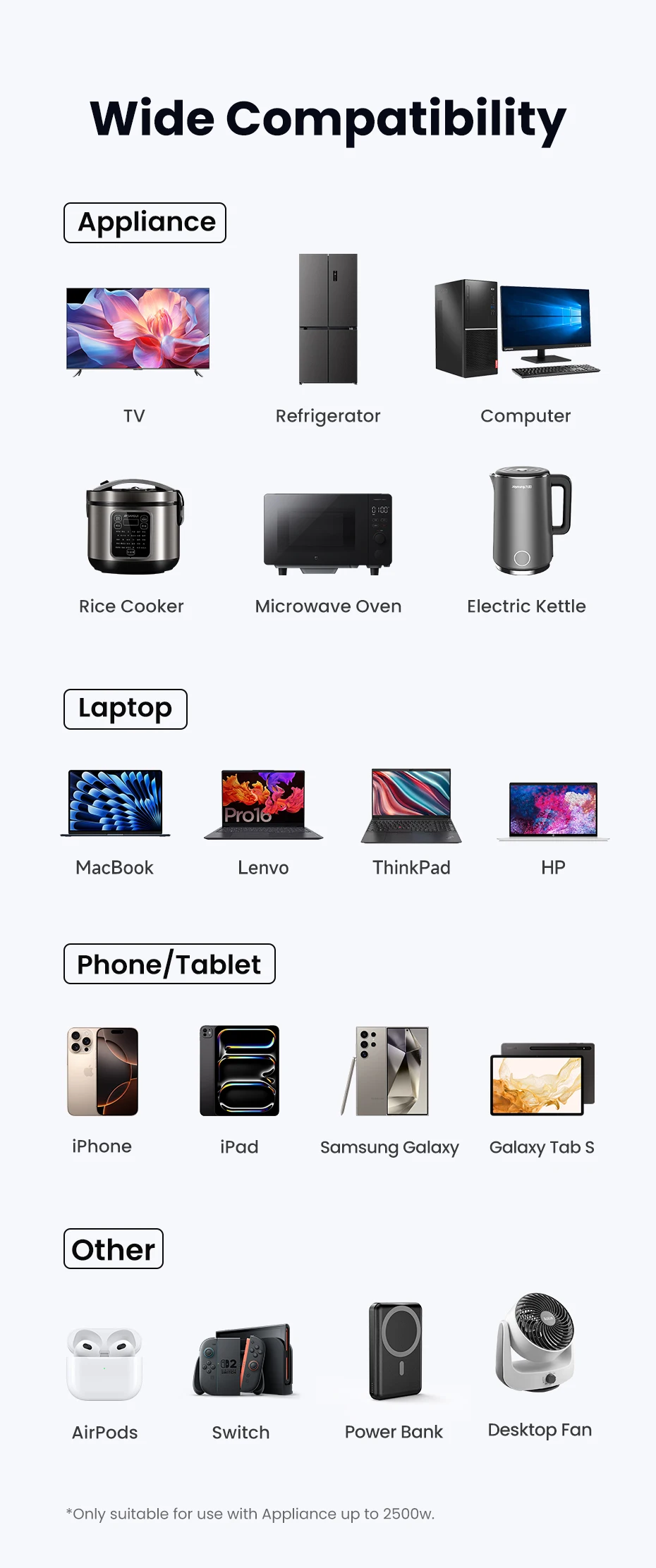 ✅Salida 7 en 1: 7 puertos para más dispositivos, satisface todas sus necesidades diarias de carga con facilidad, 3 salidas de CA