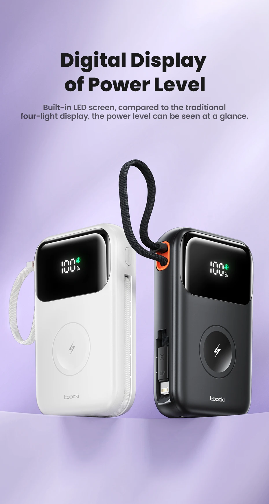 Toocki Power Bank with Built-in cables