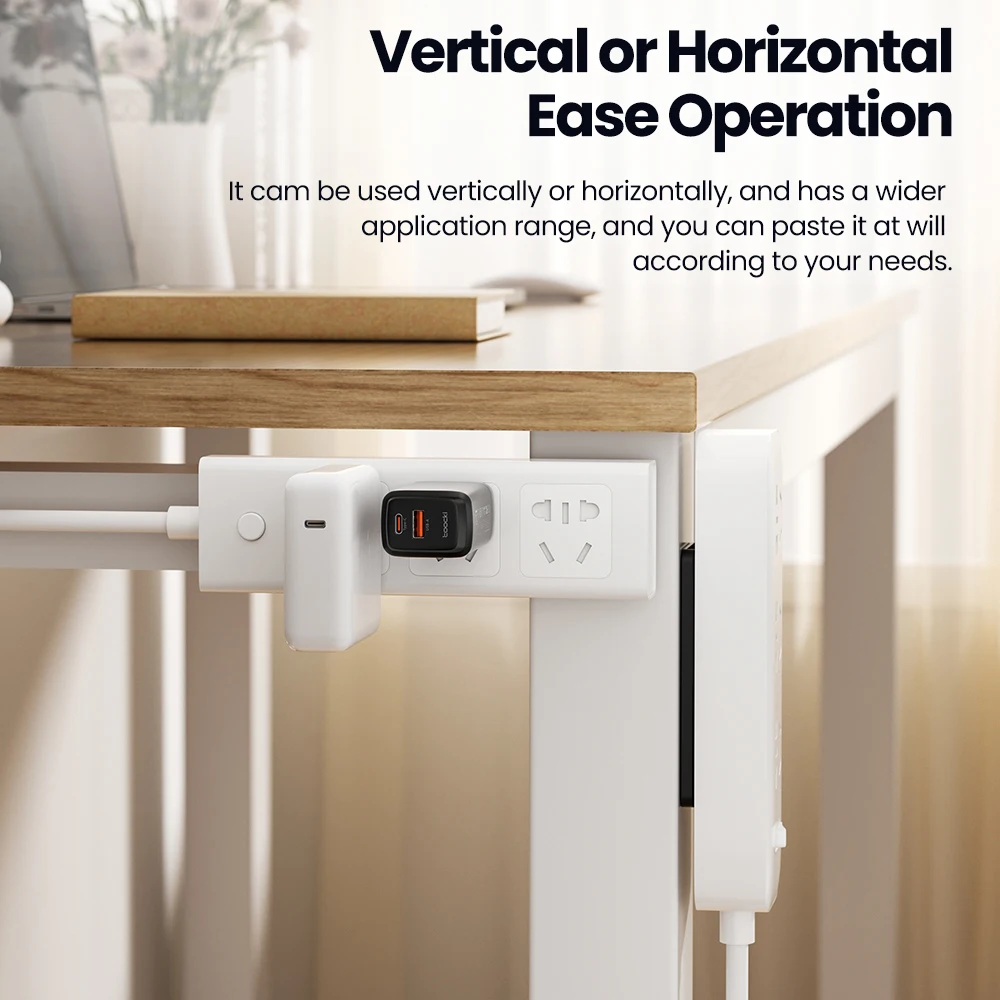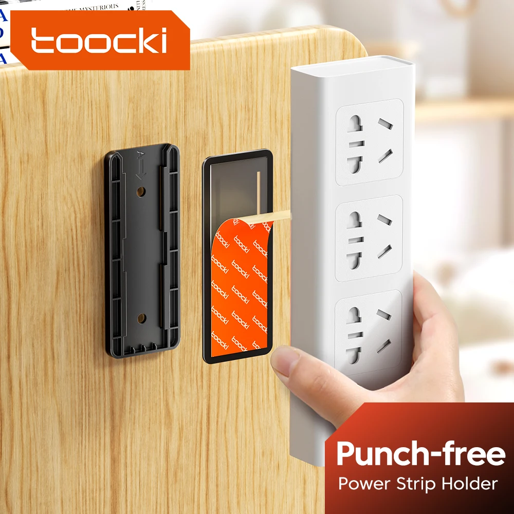 Toocki soporte montado en la pared, fijador de enchufe sin perforaciones, autoadhesivo, fijador de enchufes, soporte de tira de alimentación de Cable, organizador de cables, estante
