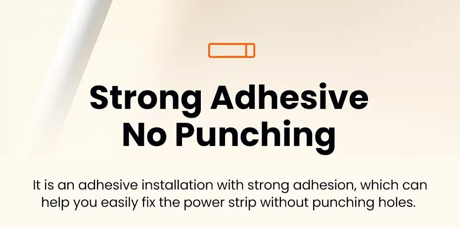 [Diseño Punch-Libre]Es una instalación adhesiva con una fuerte adhesión, que puede ayudarlo a fijar fácilmente la tira de alimentación sin perforar agujeros.