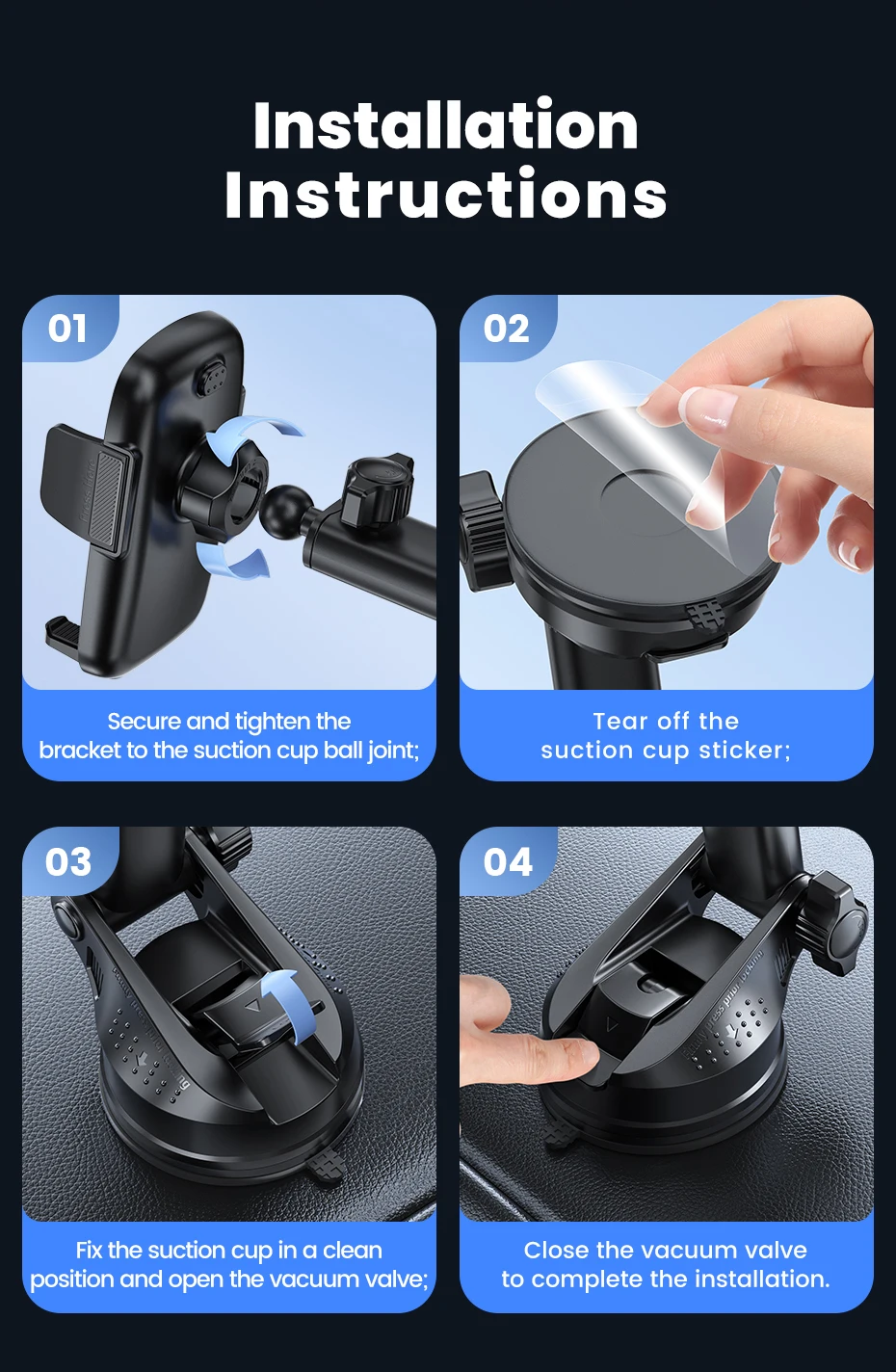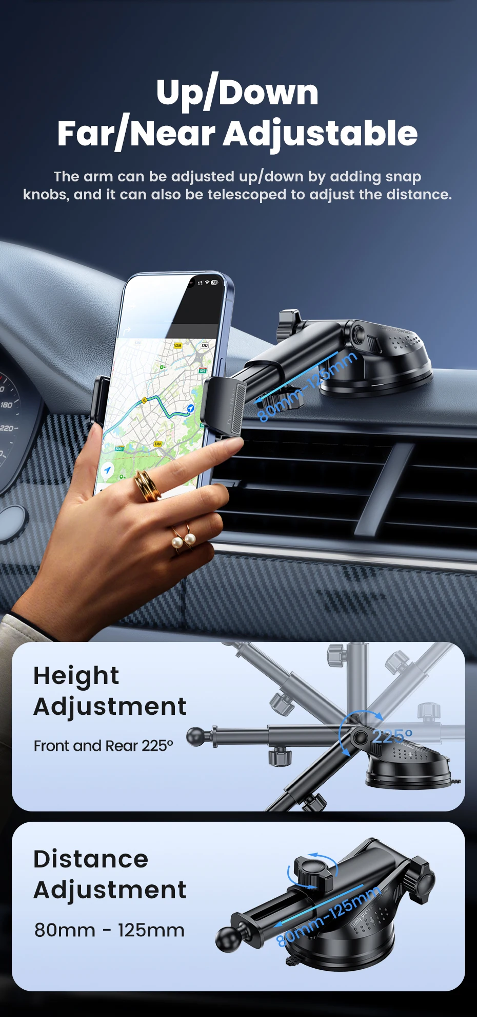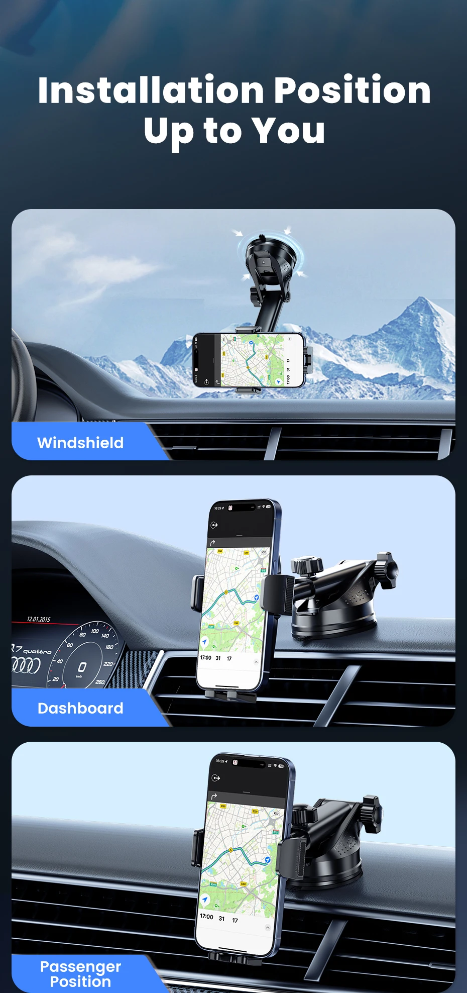 1.Soporte para teléfono de coche con ventosa.