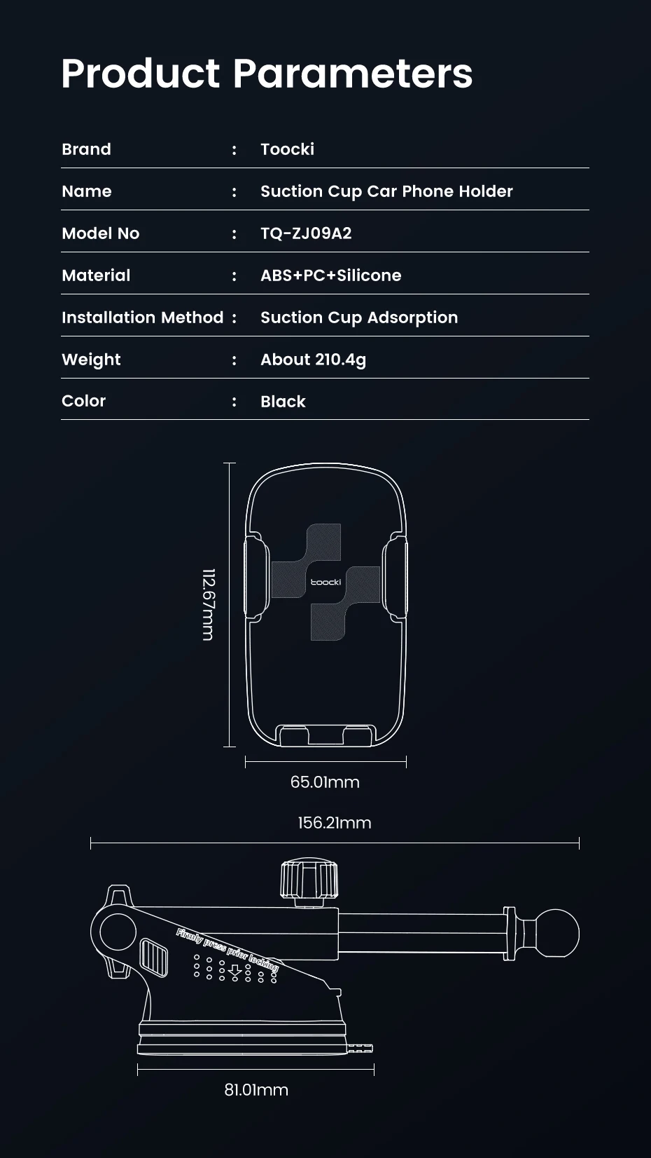 Comprar Toocki Sucker soporte para teléfono de coche parabrisas tablero ángulo Variable antivibración ventosa soporte de coche para iPhone Samsung Vivo