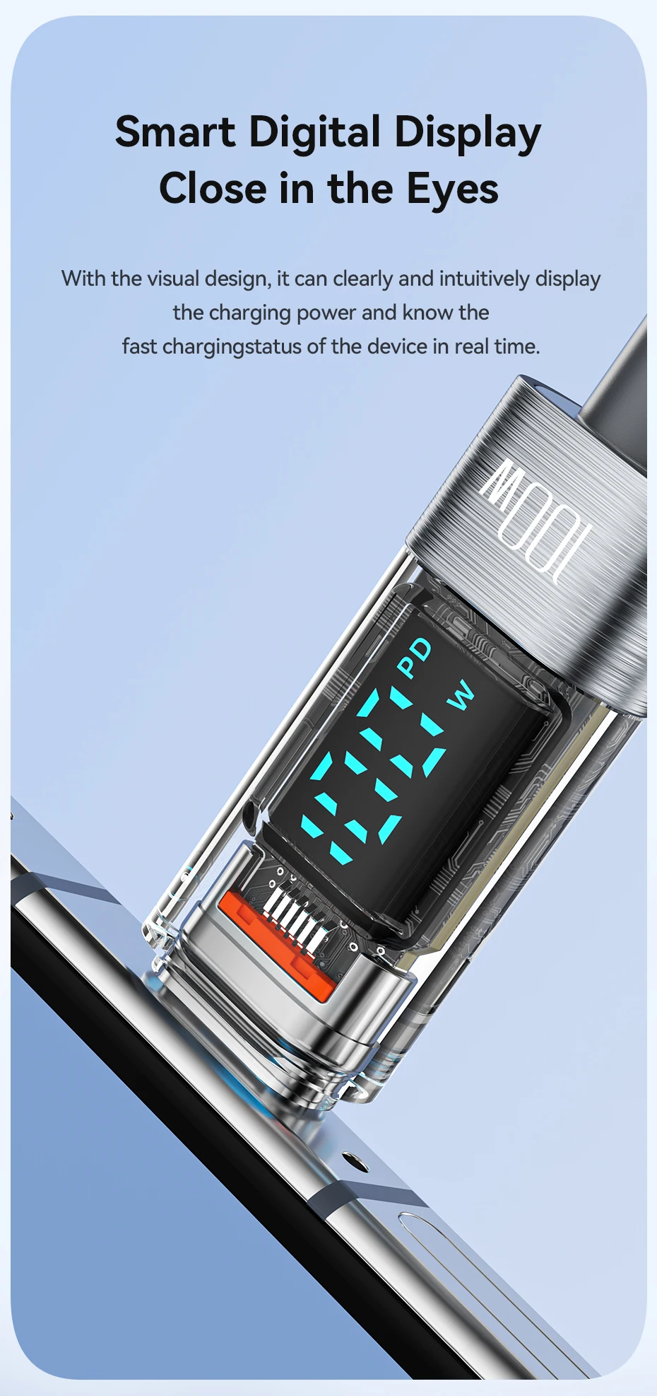 • Cable transparente:El diseño transparente del cable añade un toque de elegancia a su configuración de carga.