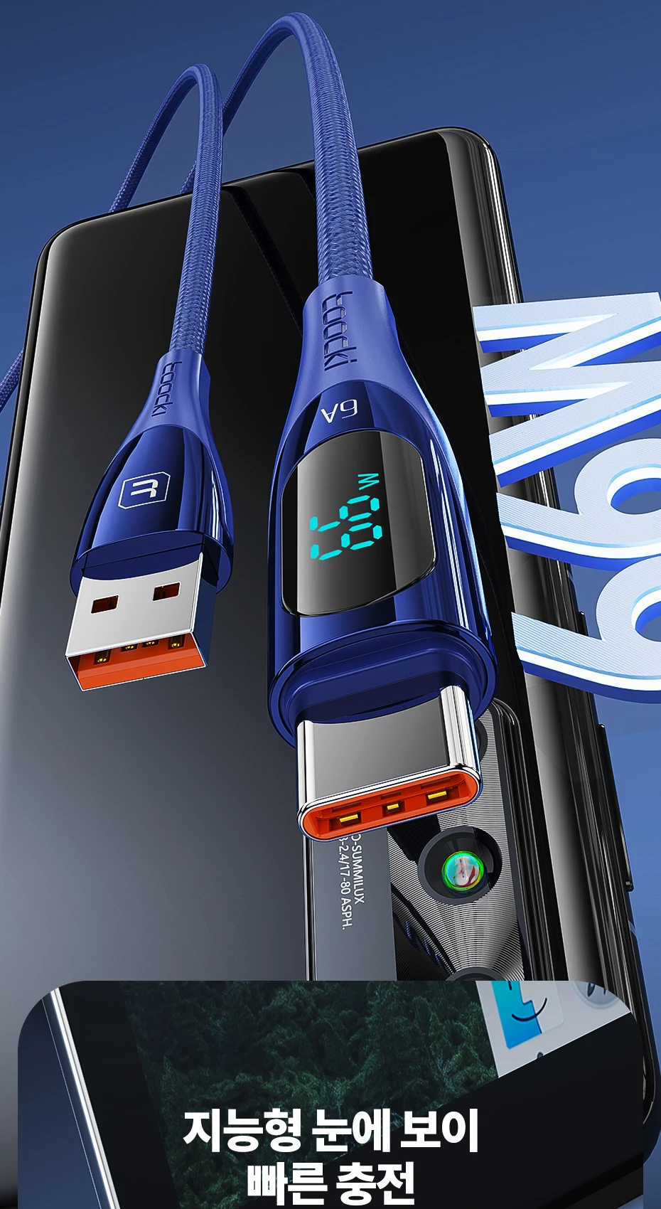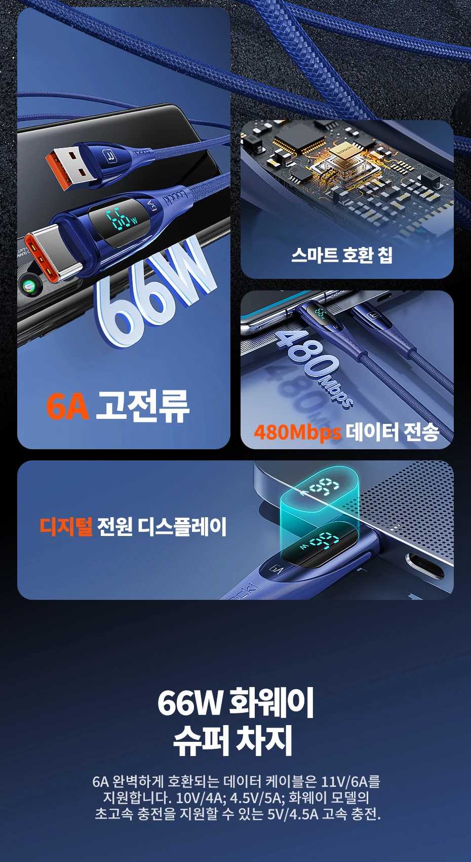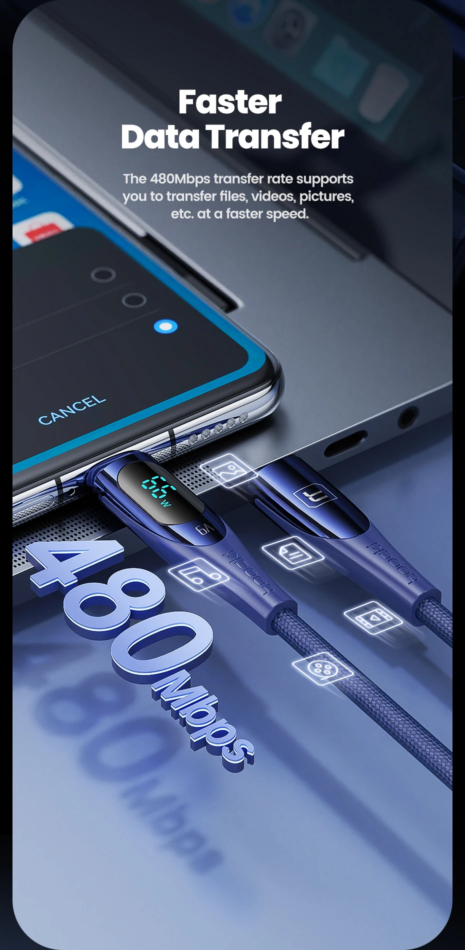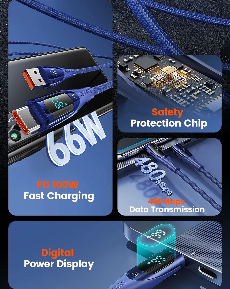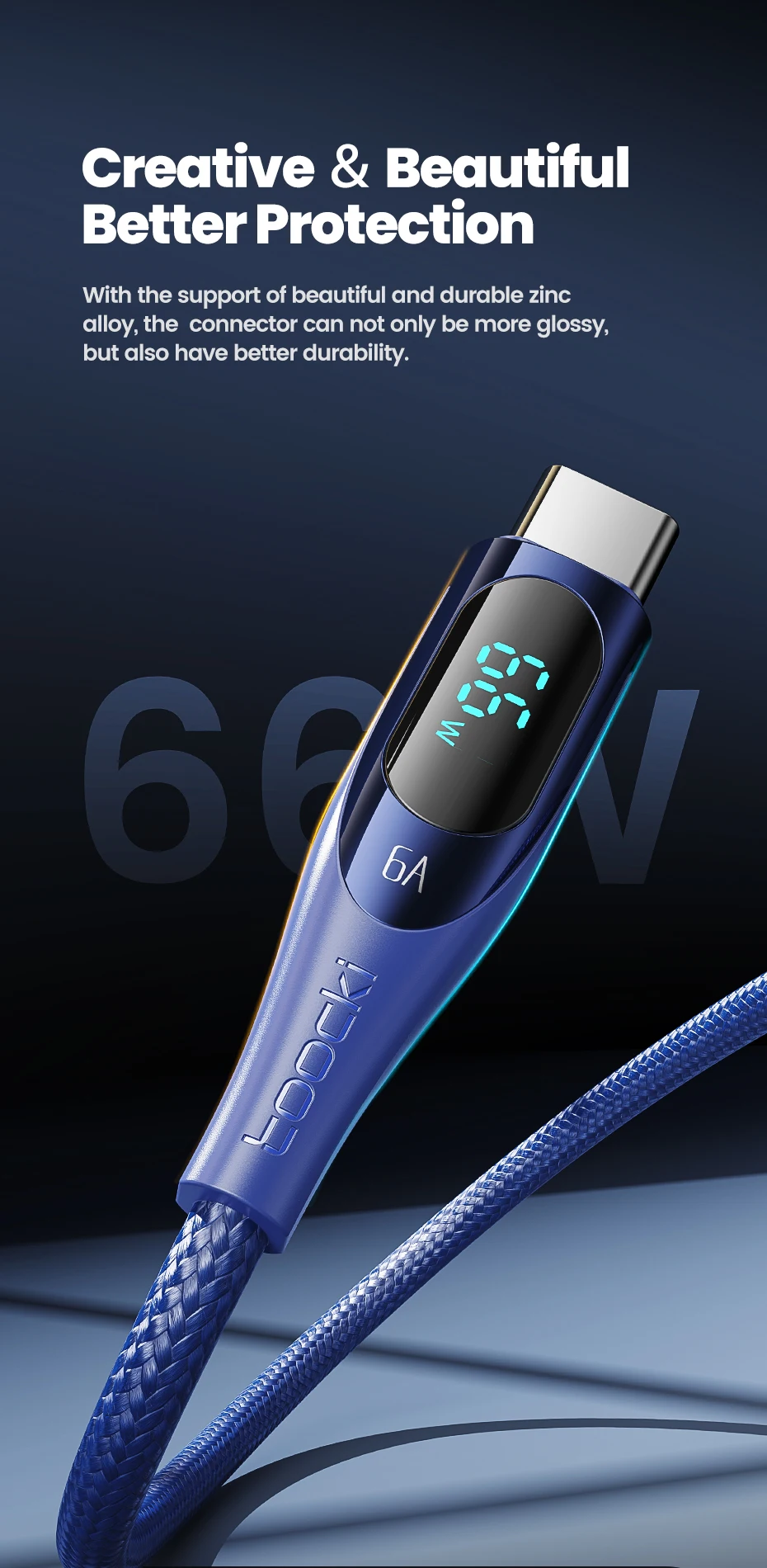 [PD 66W/6A] Cable de datos de pantalla digital de carga rápida, transmisión de alta velocidad,