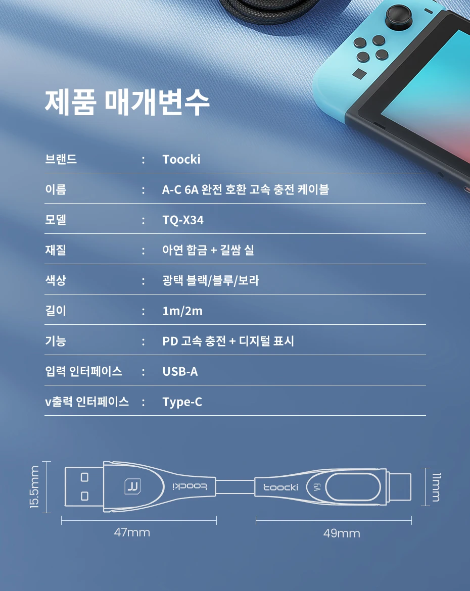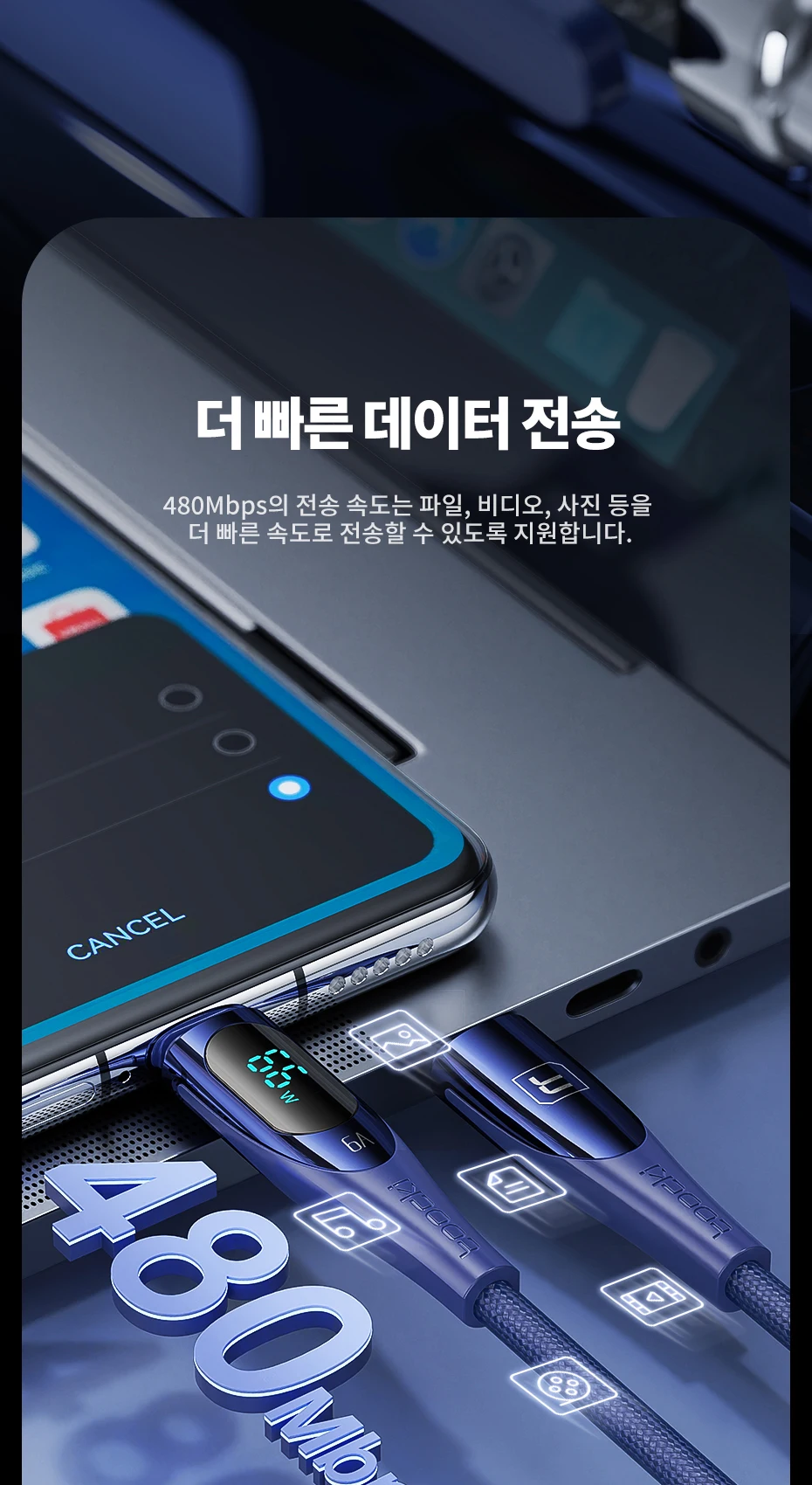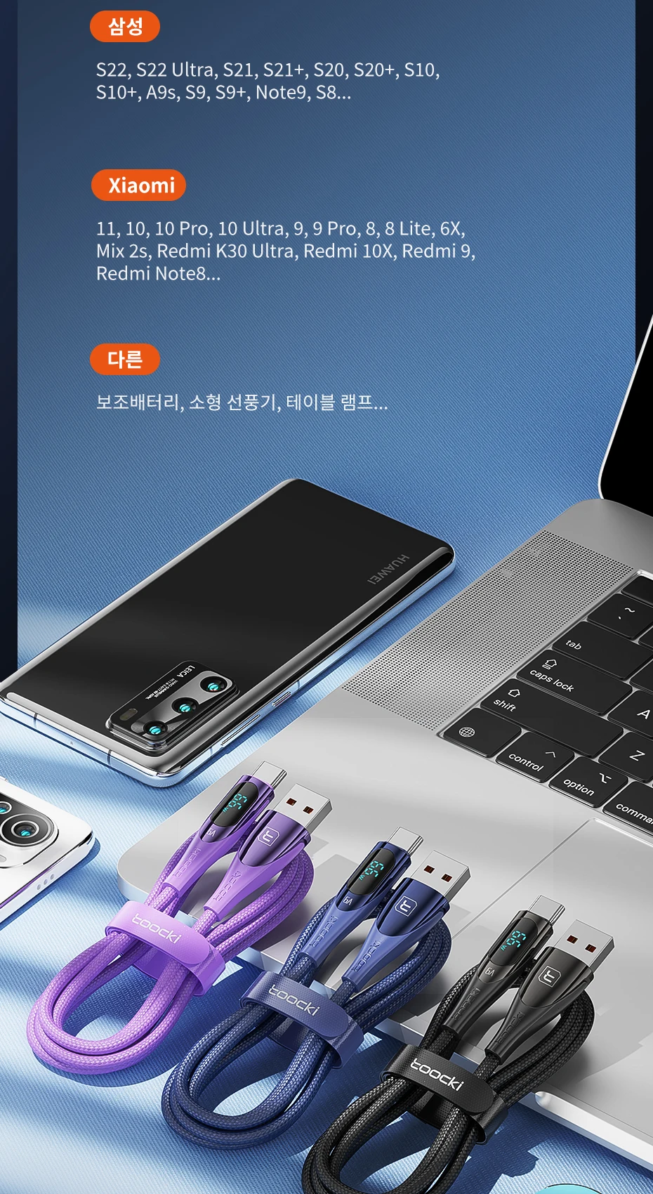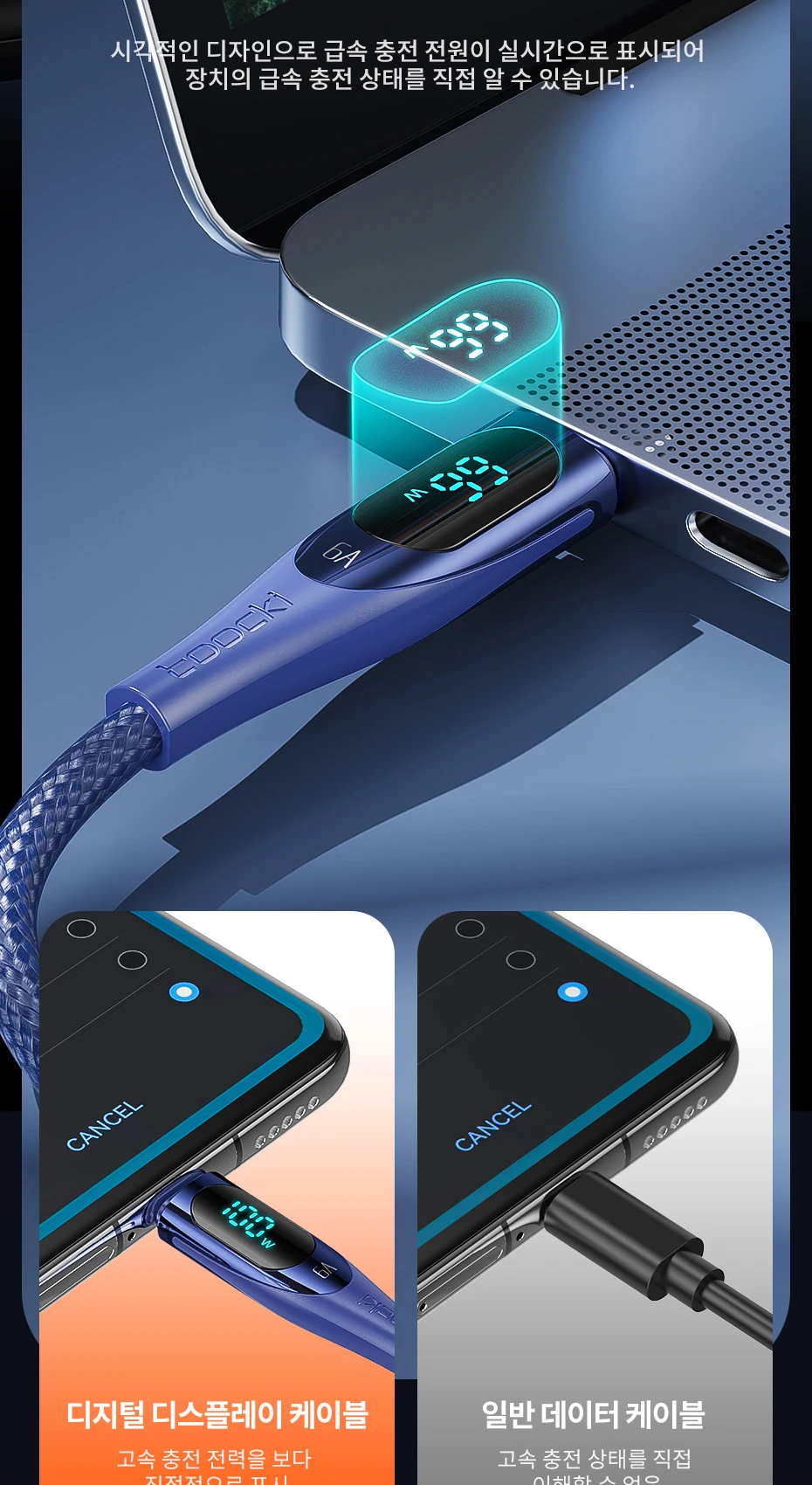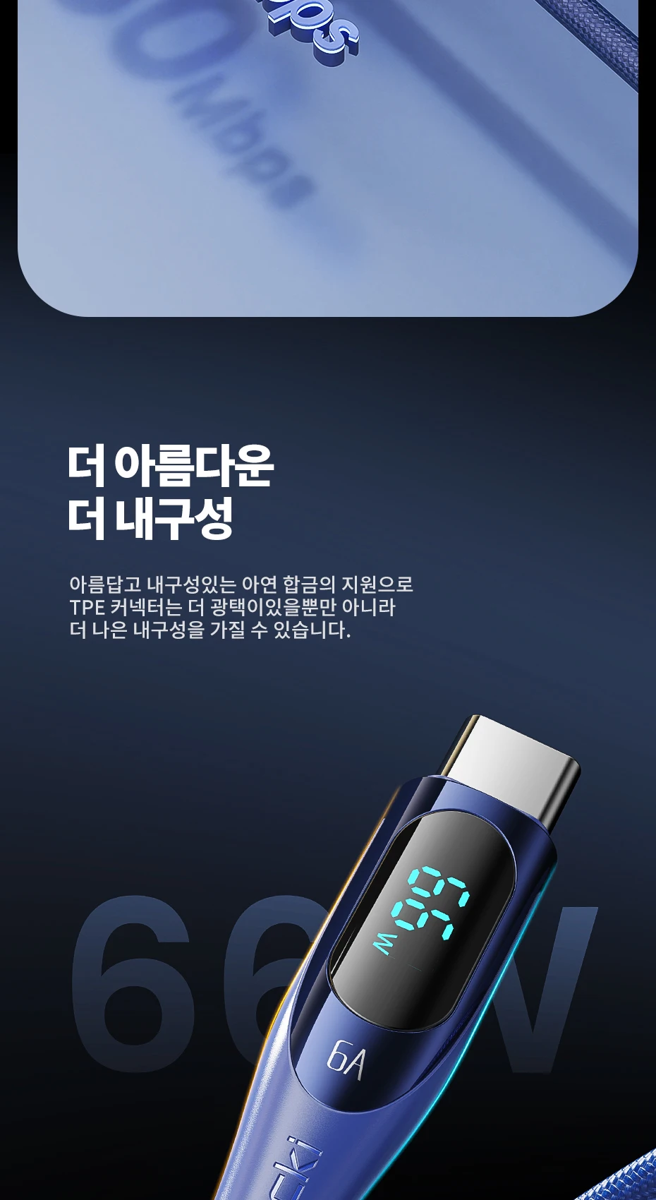 [PD 66W/6A] Cable de datos de pantalla digital de carga rápida, transmisión de alta velocidad,