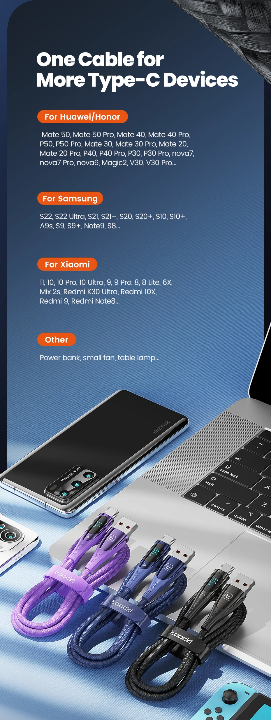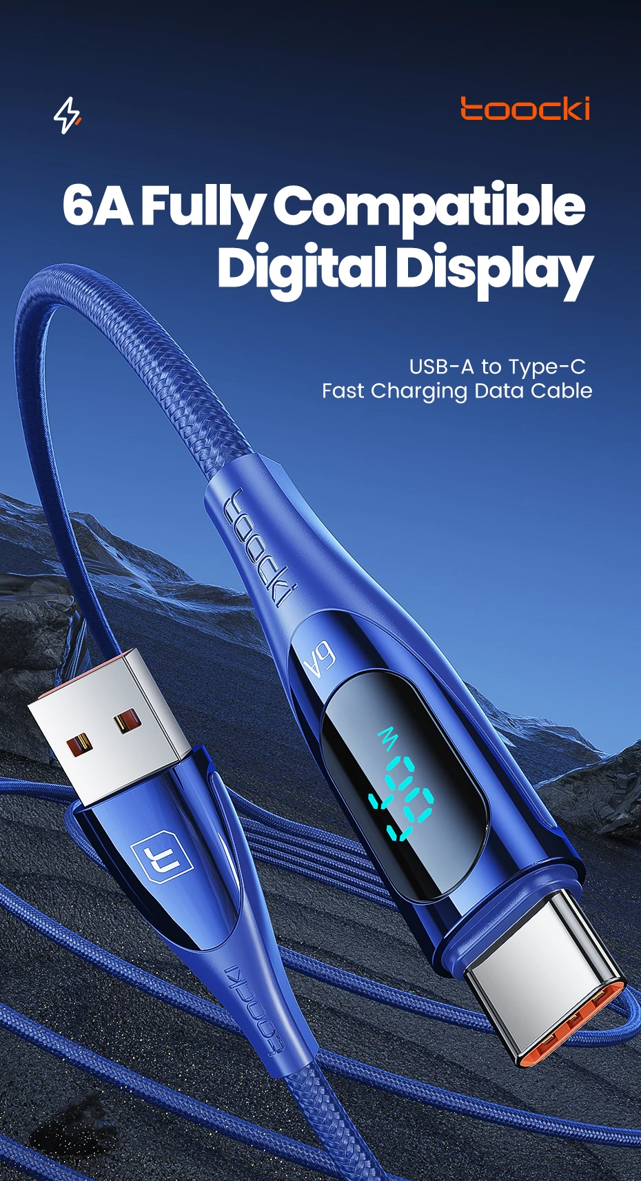 Comprar Toocki USB A a tipo C Cable 6A para Huawei Honor Xiaomi Samsung Super Charge 66W Cable de datos de aleación de Zinc de carga rápida Cable