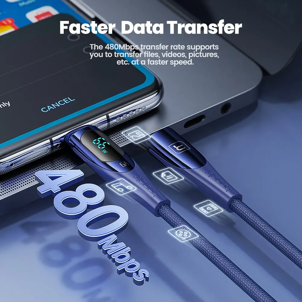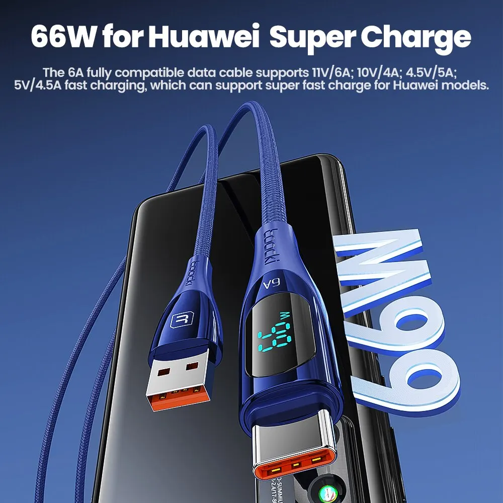 [PD 66W/6A] Cable de datos de pantalla digital de carga rápida, transmisión de alta velocidad,