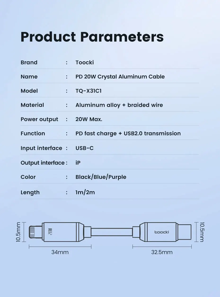 Cable de aluminio cristal PD 20W