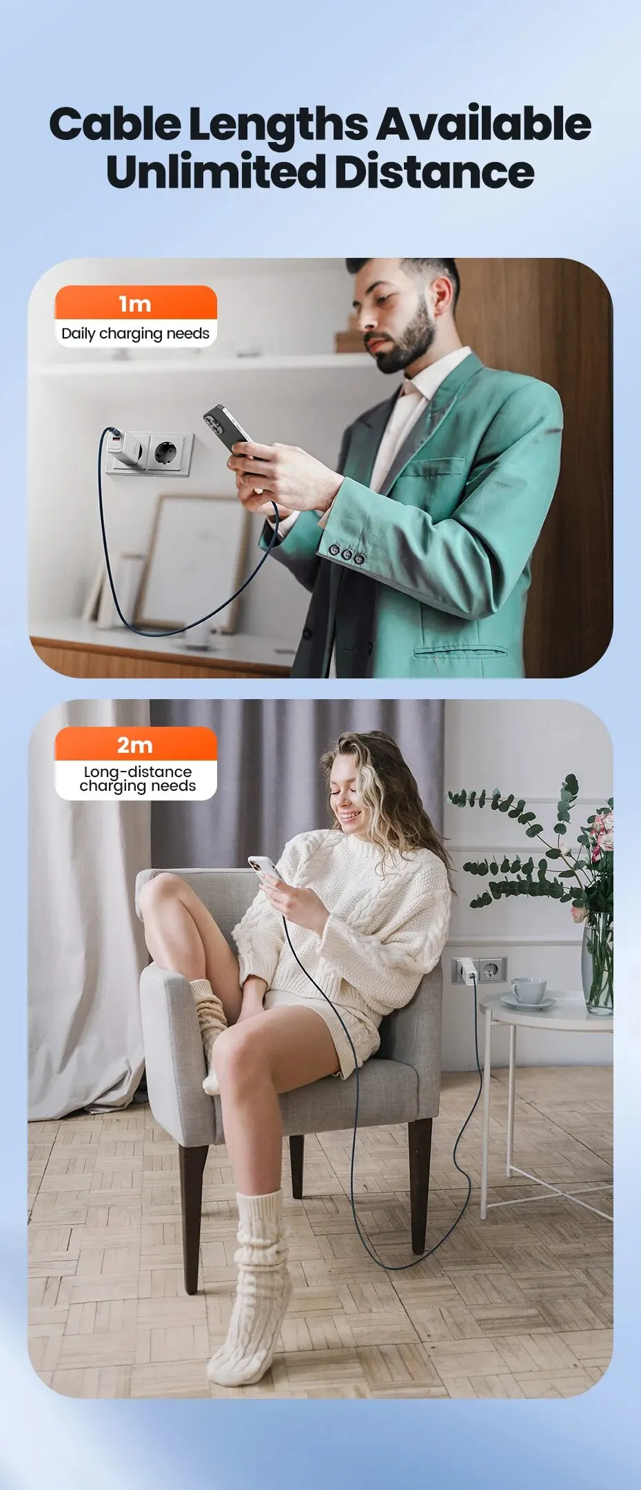 Longituds de cable disponibles Distancia ilimitada