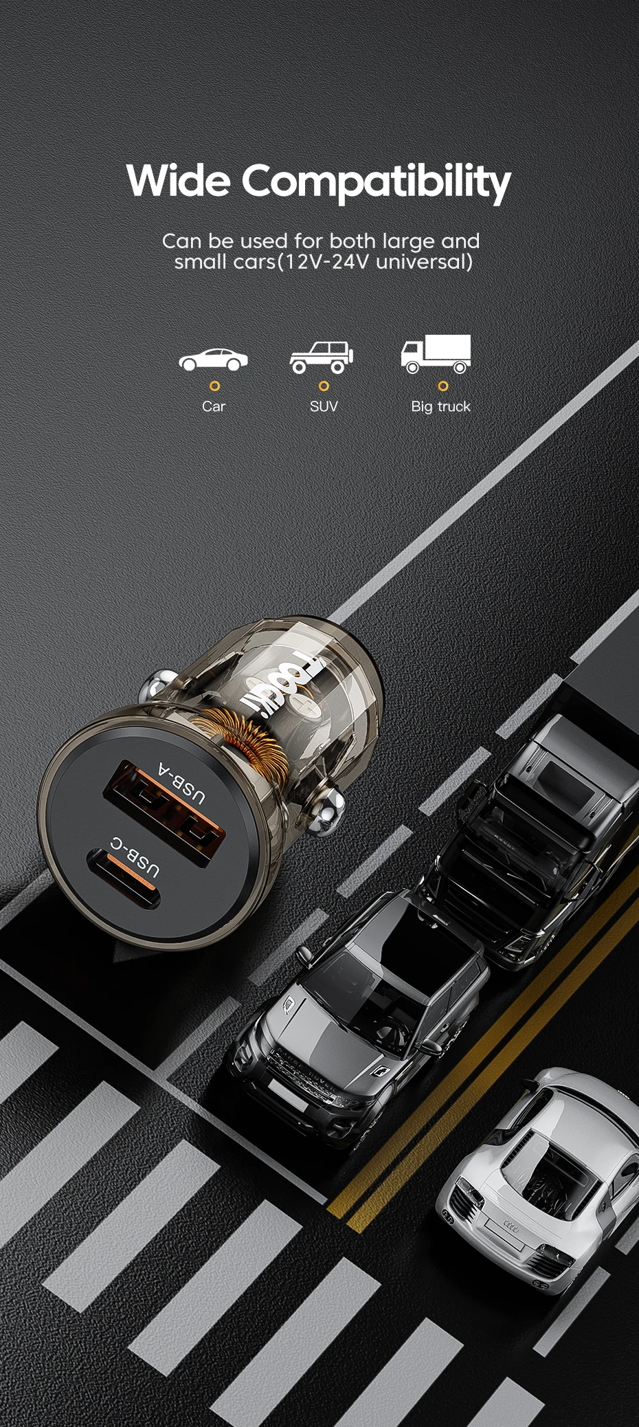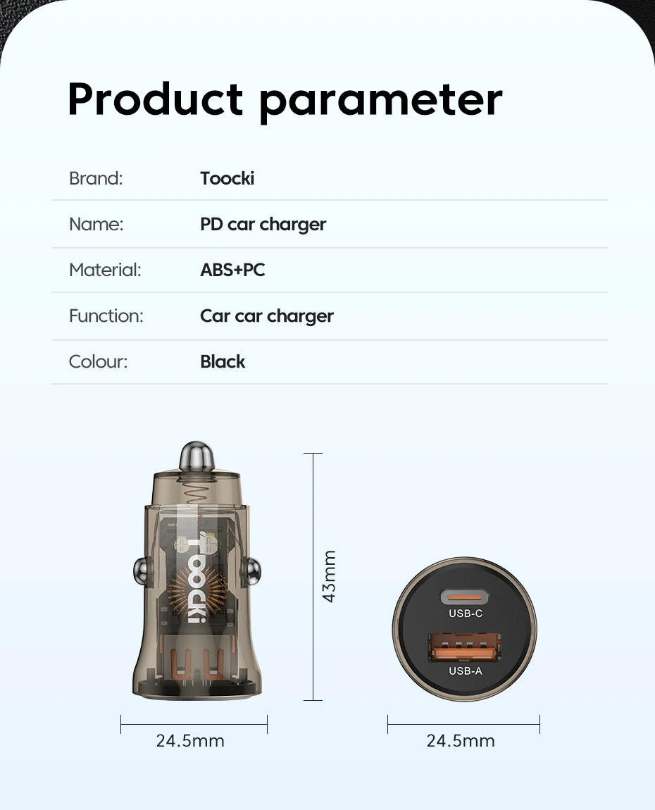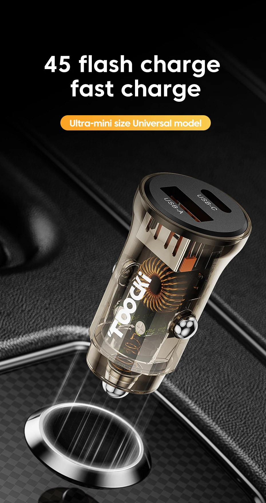 Toocki USB C cargador de coche QC 4,0 PD3.0 45W tipo C cargador de teléfono de coche de carga rápida para iPhone 15 14 13 12 Samsung Xiaomi Huawei