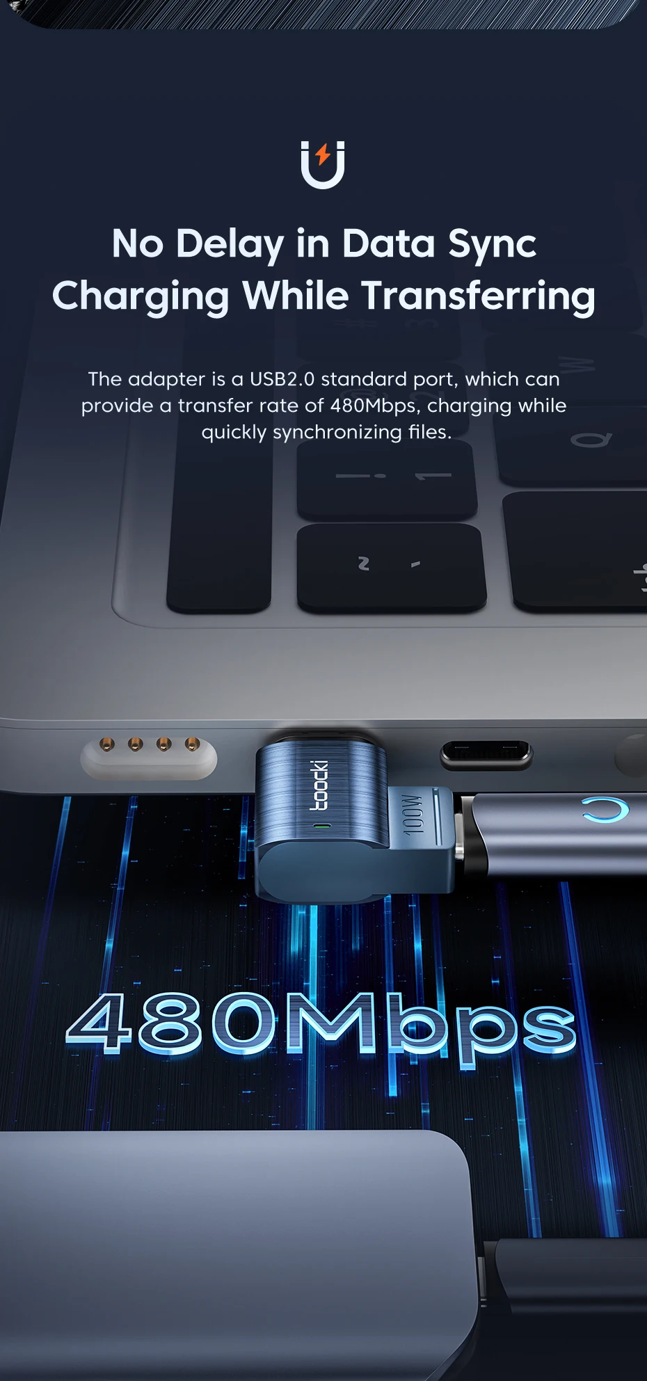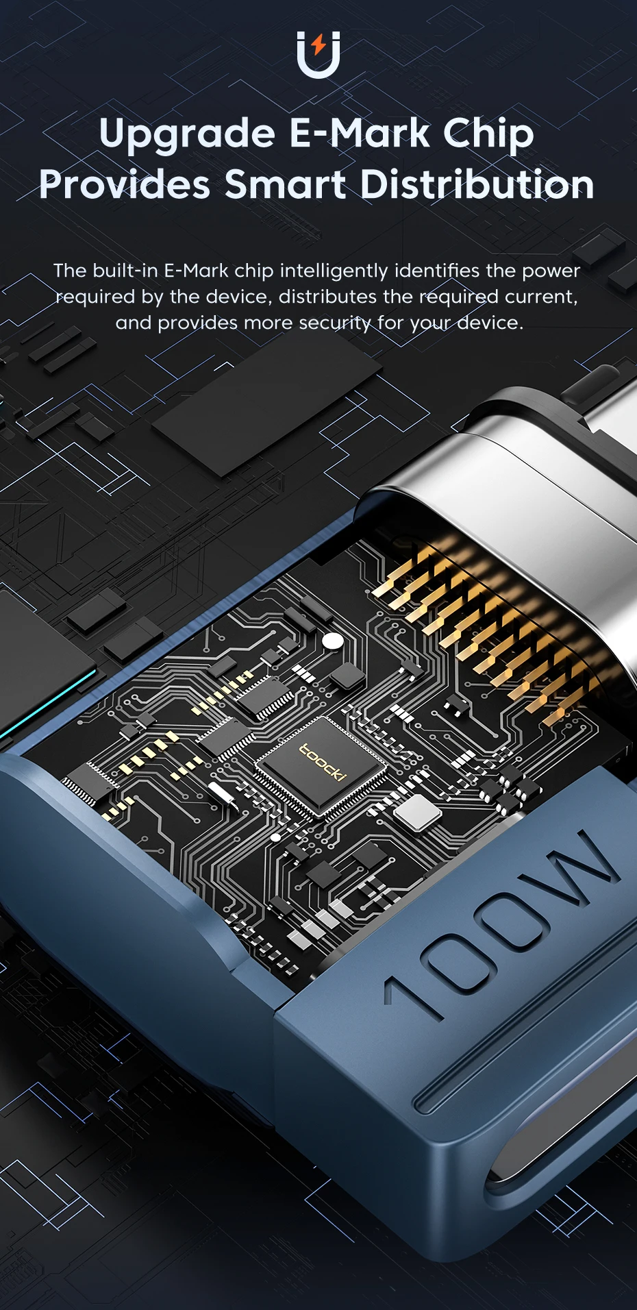 Función: carga rápida de 100 W + transmisión de datos