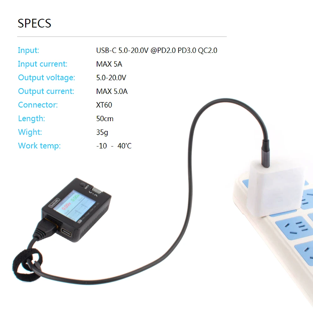 Comprar Toolkitrc-Cable de carga SC100 tipo C a XT60 para tToolkitrc M7, M6, M6D, M8S, 0,5 m, 1m