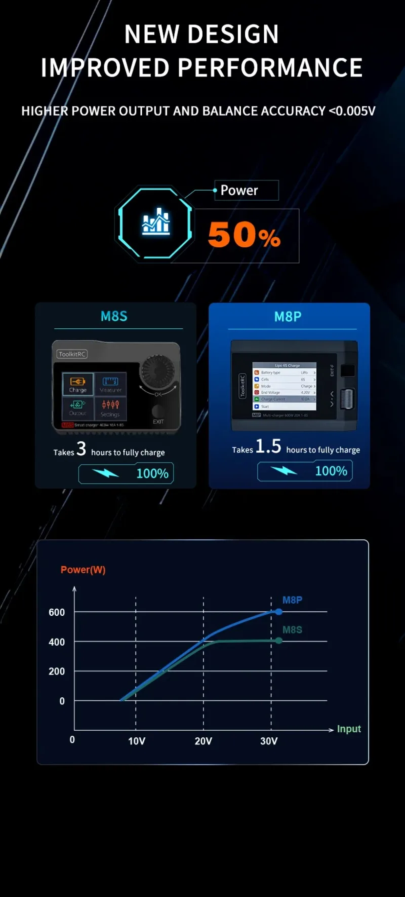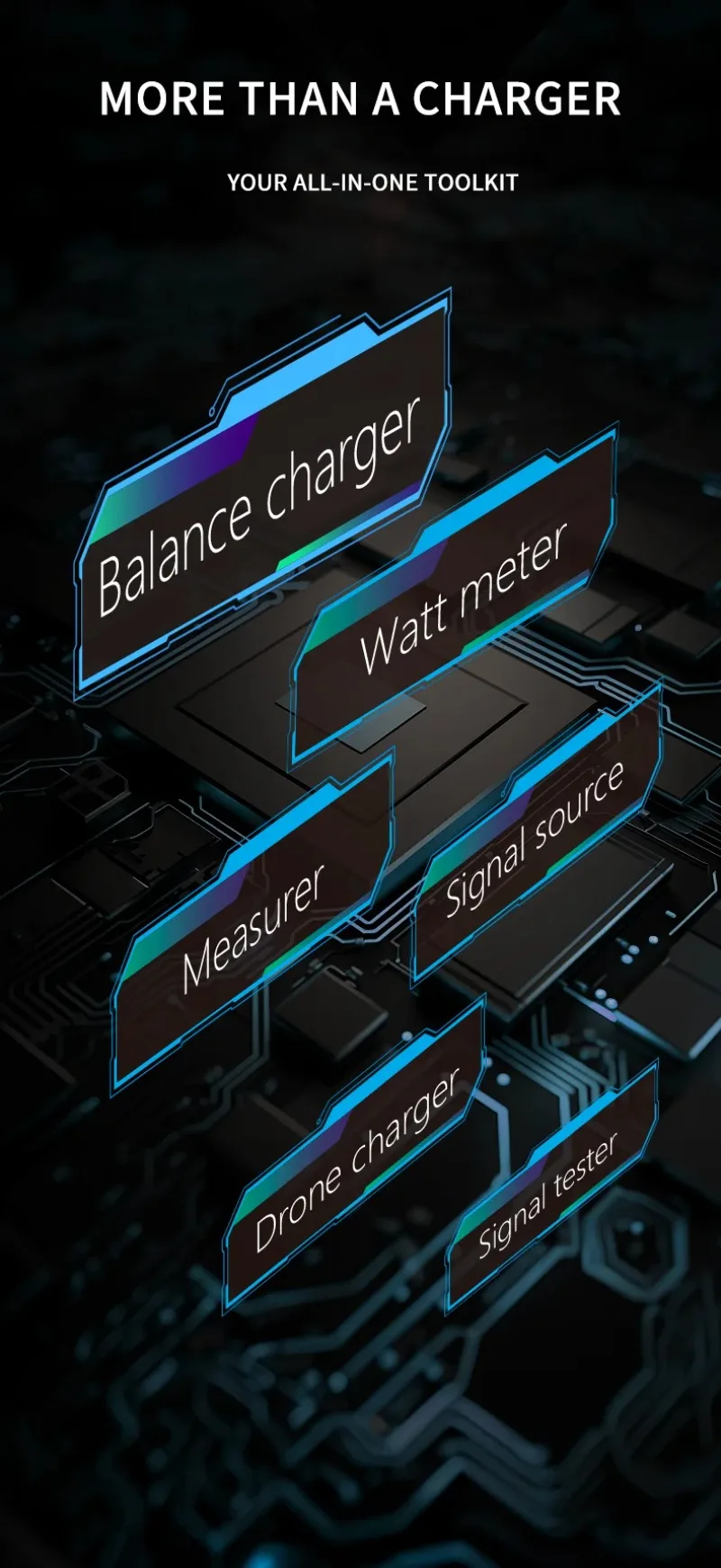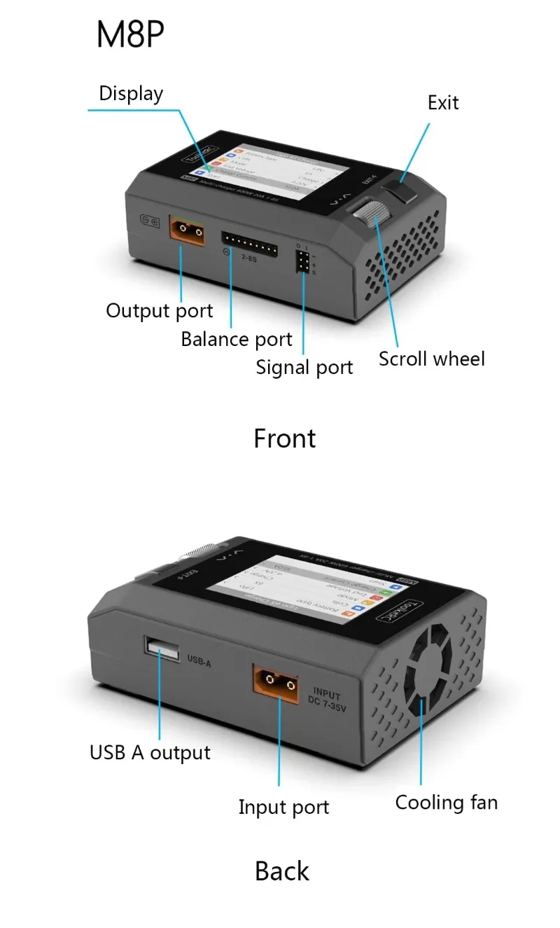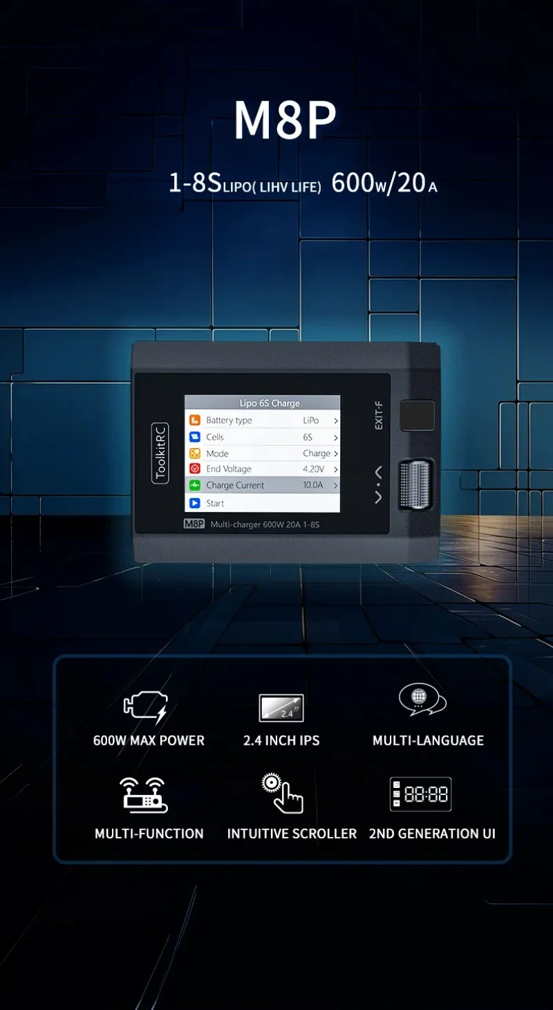 El M8P es una herramienta multifuncional que integra funciones como un cargador y descargador de equilibrio, un dispositivo de medición de señal y una fuente de señal.