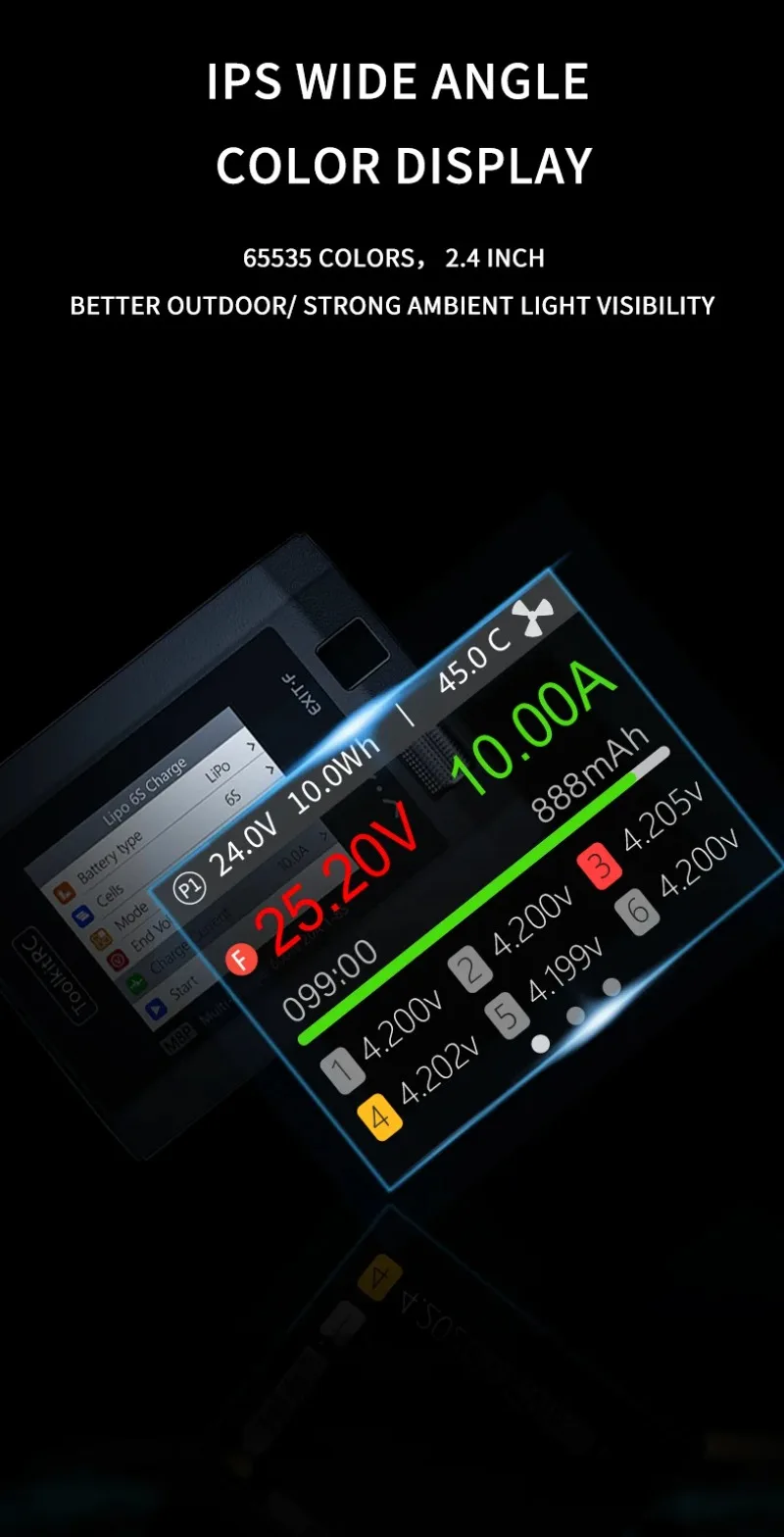 Mide el voltaje de la batería, la resistencia interna de la batería y equilibra los paquetes de litio automáticamente.
