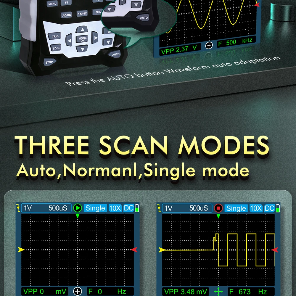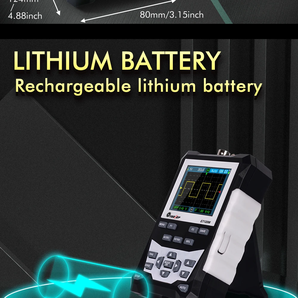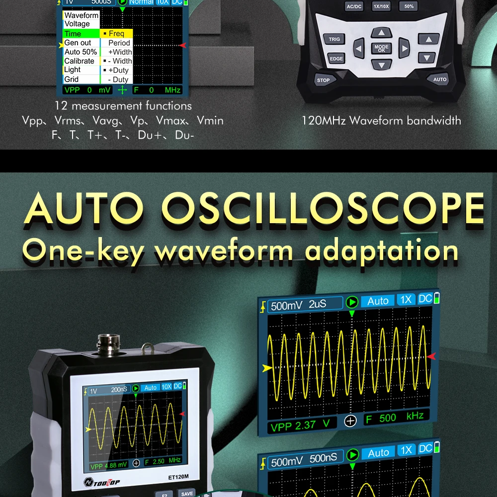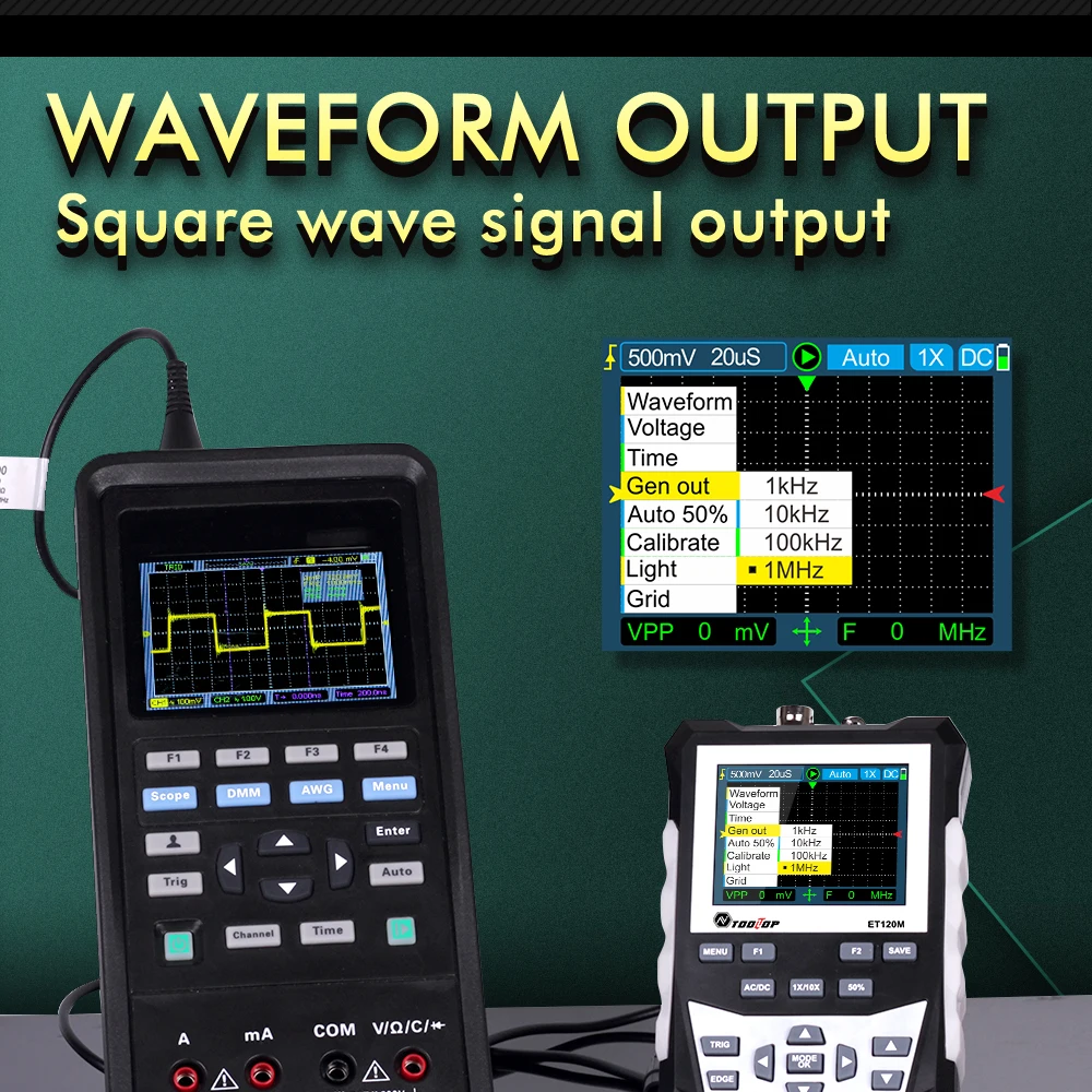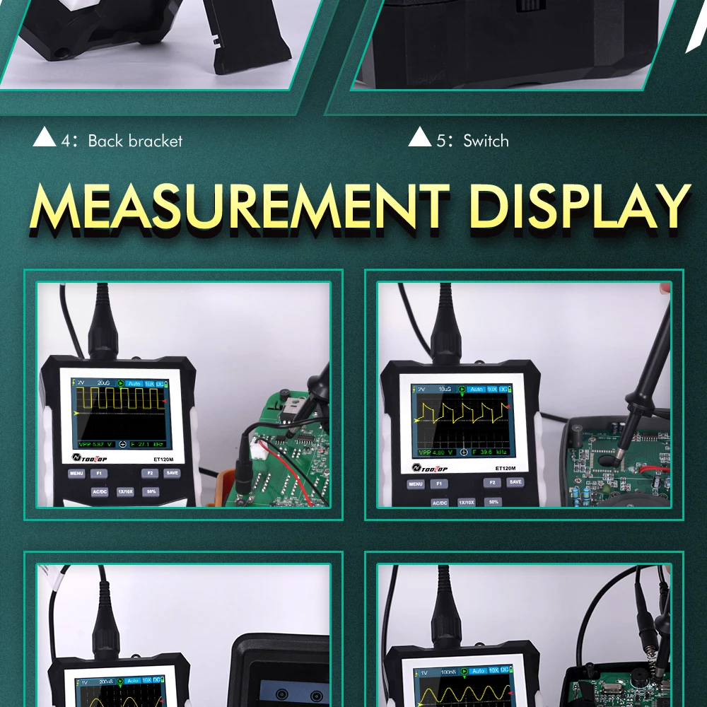 -Ancho de banda analógico de 120MHz y frecuencia de muestreo de 500 MS/sOsciloscopio con 2,4 pulgadas 320*240 pantalla a color claro