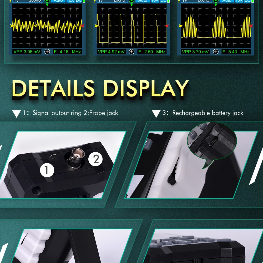 -Parámetros de forma de onda ajustables: base de tiempo, amplitud, pendiente de disparo y sensibilidad vertical se puede configurar