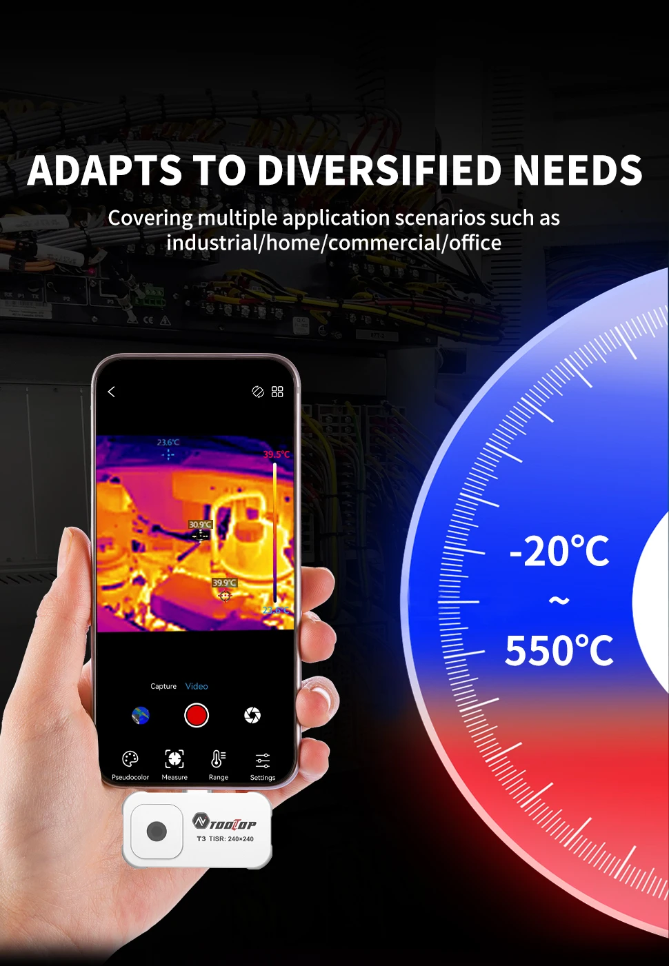 -20~550℃ amplio rango de medición de temperatura