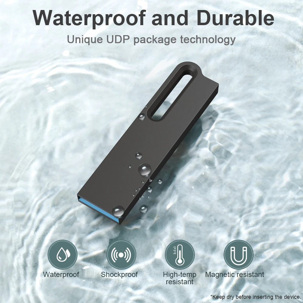 Waterproof Metal 32GB 64GB 128GB 256GB USB 3.0 Flash Drive· The full-metal thumb drive has USB 3.0 port.· It‘s easy for you to transfer data between PCs, tablets, car audio, speaker , smart TV.· Small, lightweight, plug and play, keyring, easy to carry around.· Fast heat dissipation, waterproof wear resistant, dust-proof, splash-proof, shockproof, temperature-proof.Metal Shell With High Performance ChipsRugged and stylish on the outside, powerful on the insideThis USB flash drive is all metal and black, which not only looks high end but also has good heat dissipates to ensure the high performance of the drive. (Any USB stick will heat up when in use, this is a normal part of the work of a USB stick).Capacity: 32GB 64GB 128GB 256GBColor: BlackInterfaces Type: USB 3.0Compatible System: Windows XP/7/8/10, Linux, Mac OS etc.File format: exFATProduct Weight: 9g/0.31 ozProduct Dimension: 1.90*0.48*0.1inchPackage includes:1PCS/2PCS TOPESELUSB 3.0 flash drive