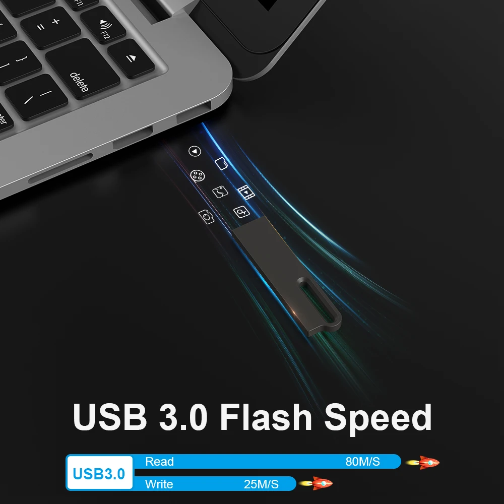 Waterproof Metal 32GB 64GB 128GB 256GB USB 3.0 Flash Drive· The full-metal thumb drive has USB 3.0 port.· It‘s easy for you to transfer data between PCs, tablets, car audio, speaker , smart TV.· Small, lightweight, plug and play, keyring, easy to carry around.· Fast heat dissipation, waterproof wear resistant, dust-proof, splash-proof, shockproof, temperature-proof.Metal Shell With High Performance ChipsRugged and stylish on the outside, powerful on the insideThis USB flash drive is all metal and black, which not only looks high end but also has good heat dissipates to ensure the high performance of the drive. (Any USB stick will heat up when in use, this is a normal part of the work of a USB stick).Capacity: 32GB 64GB 128GB 256GBColor: BlackInterfaces Type: USB 3.0Compatible System: Windows XP/7/8/10, Linux, Mac OS etc.File format: exFATProduct Weight: 9g/0.31 ozProduct Dimension: 1.90*0.48*0.1inchPackage includes:1PCS/2PCS TOPESELUSB 3.0 flash drive