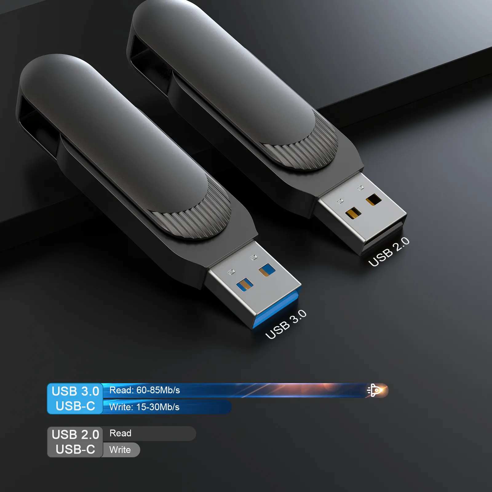 【Data Transfer and Storage】The USB 3.0 (USB 3.1 Gen 1) flash drive 128G ensures faster data transfer, including music, gaming, videos, photos, or other large files on work, school, home and travelling. It delivers a read speed to 85MB/ s and a write speed to 30MB/s.