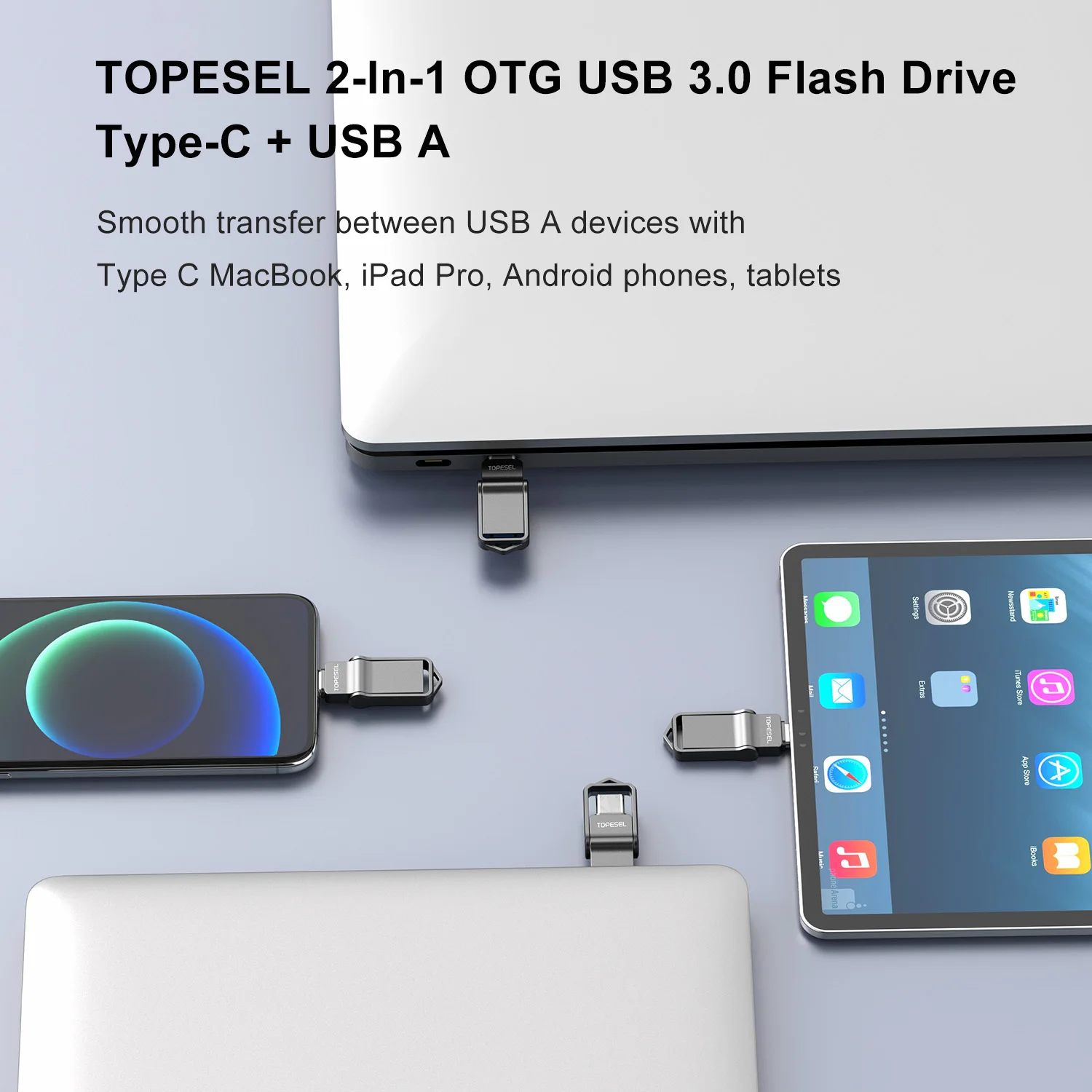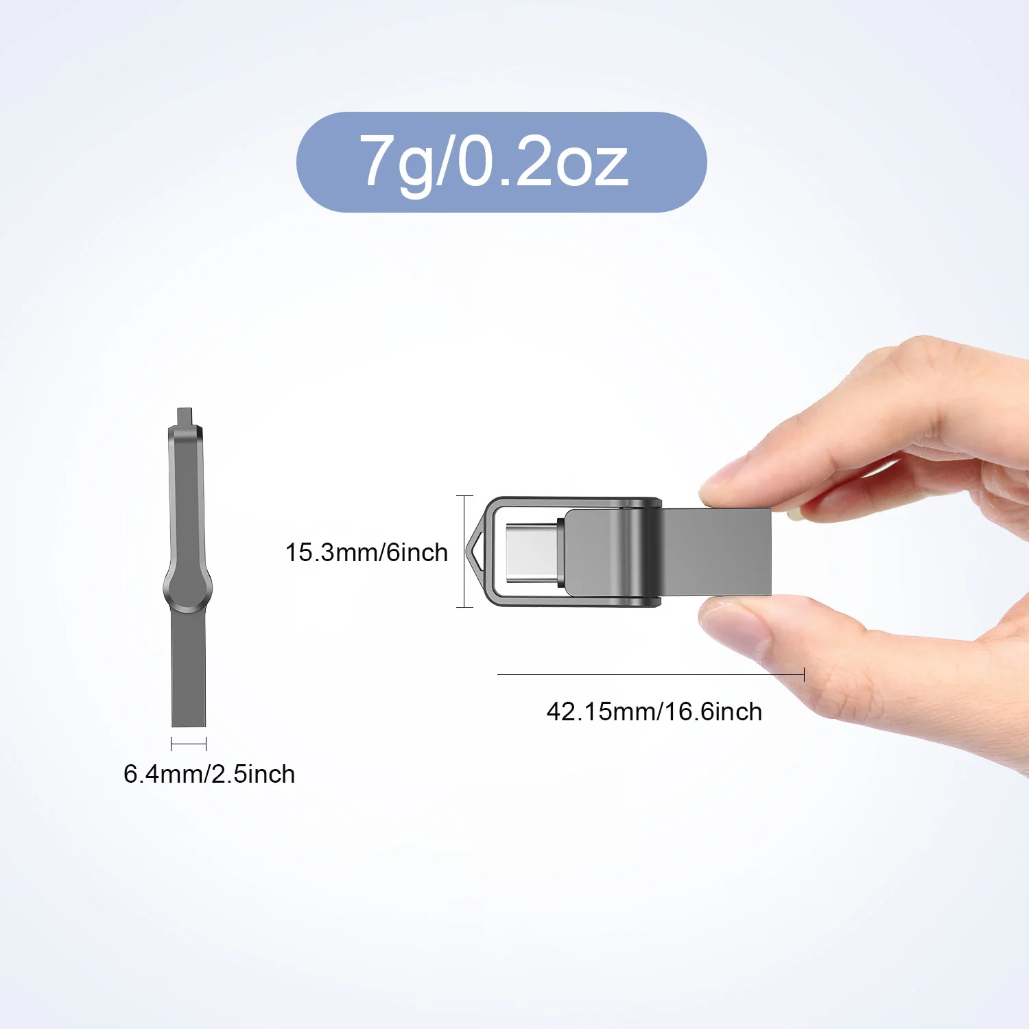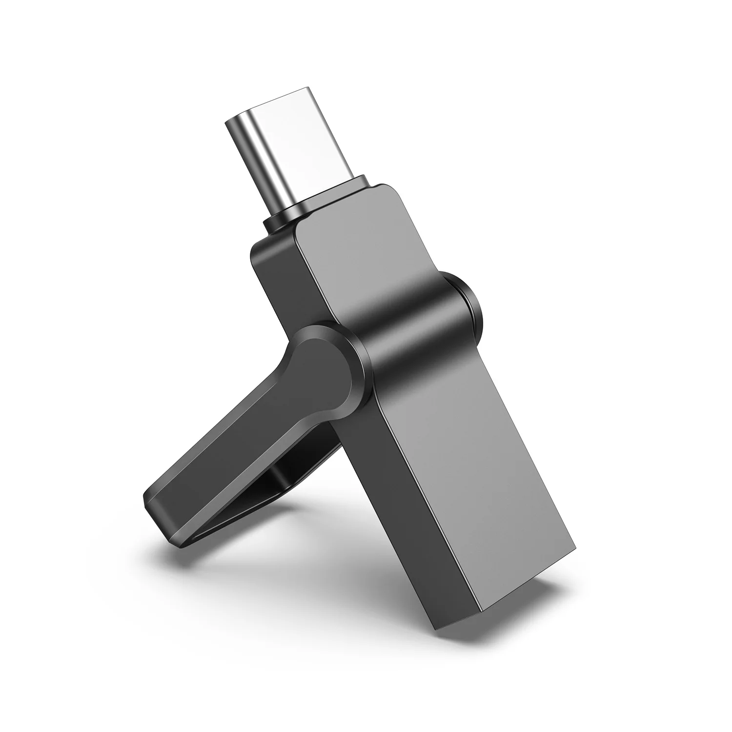 Coming with USB C and USB A connectors, this 2-in-1 dual USB C flash drive allows you to easily move files among USB-A devices, Type-C Macs, iPad Pro, Android smartphones, tablets, and more. The turning cover protects the connectors and easily switches over for different devices.