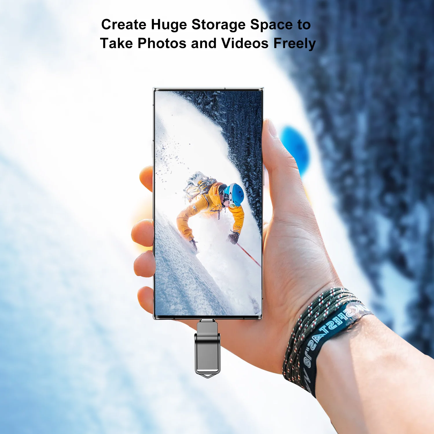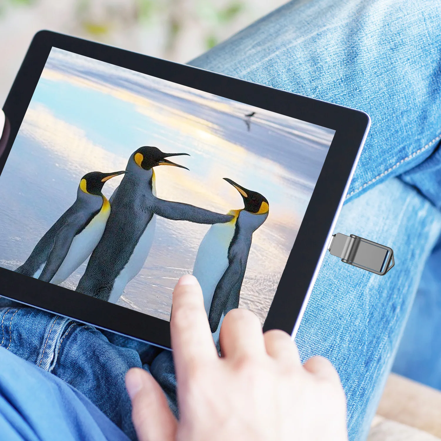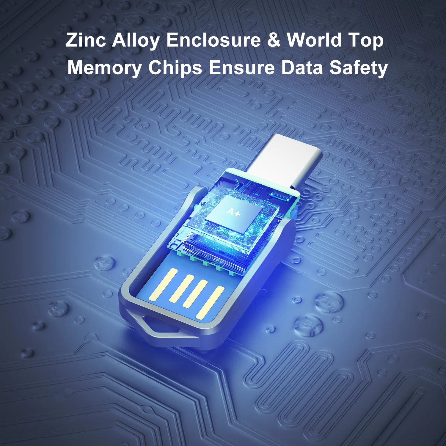 Coming with USB C and USB A connectors, this 2-in-1 dual USB C flash drive allows you to easily move files among USB-A devices, Type-C Macs, iPad Pro, Android smartphones, tablets, and more. The turning cover protects the connectors and easily switches over for different devices.