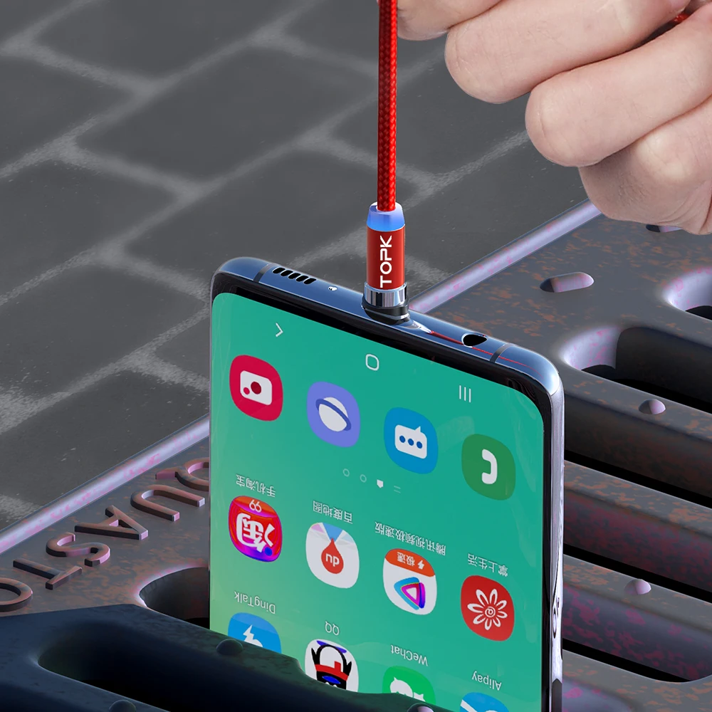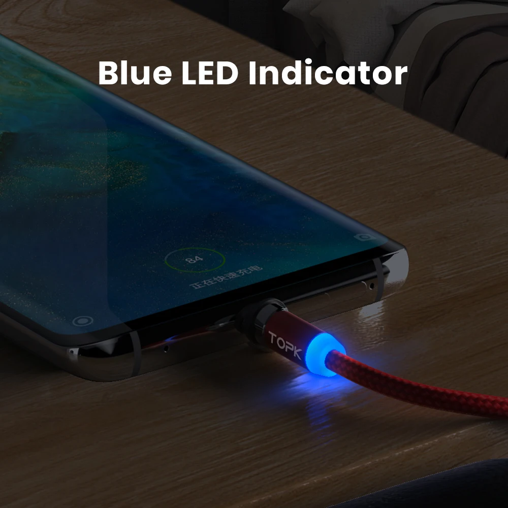 Comprar TOPK-Cable de carga magnético 3 en 1 para teléfono móvil, dispositivo giratorio de 360 grados, de nailon trenzado, Micro USB C