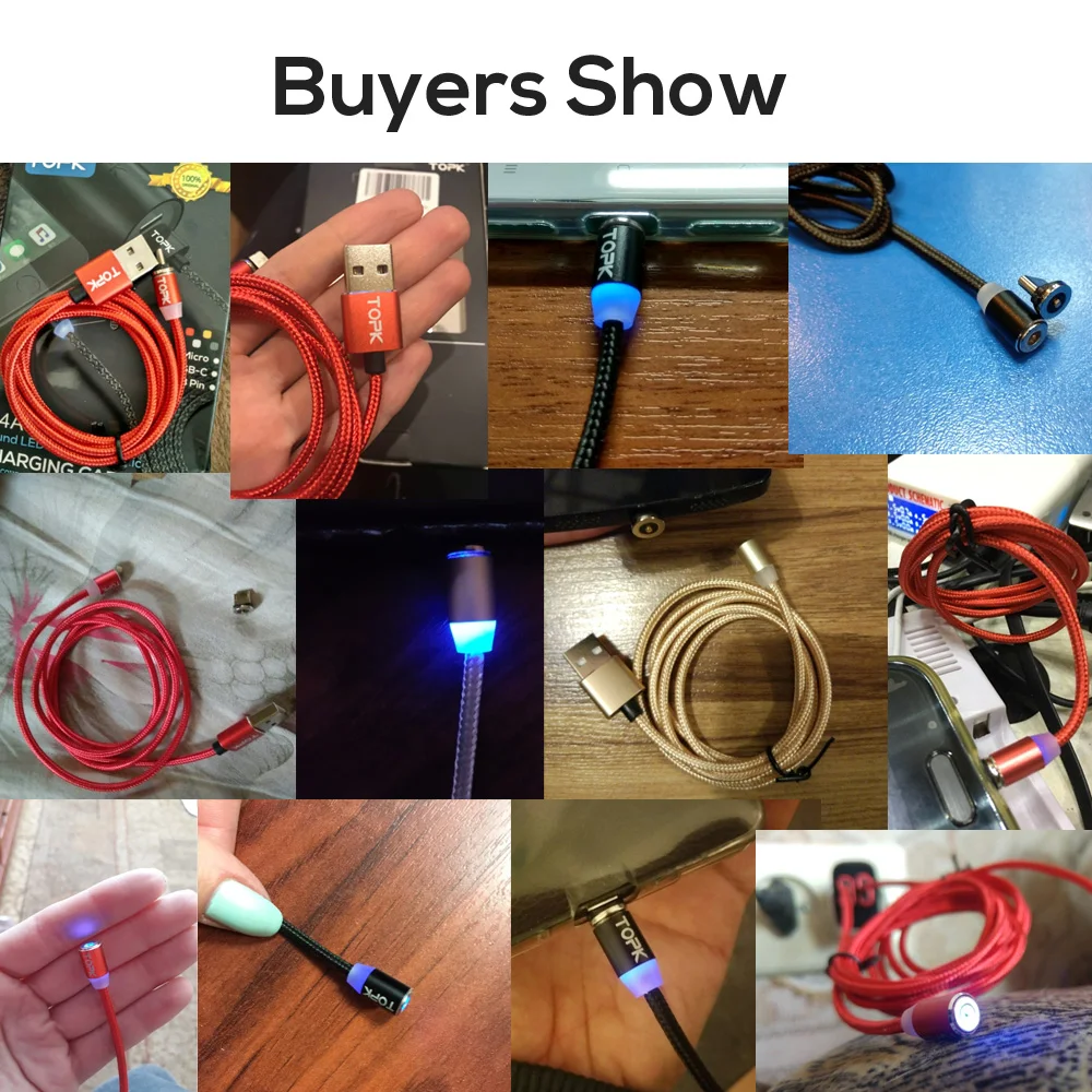Comprar TOPK-Cable de carga magnético 3 en 1 para teléfono móvil, dispositivo giratorio de 360 grados, de nailon trenzado, Micro USB C