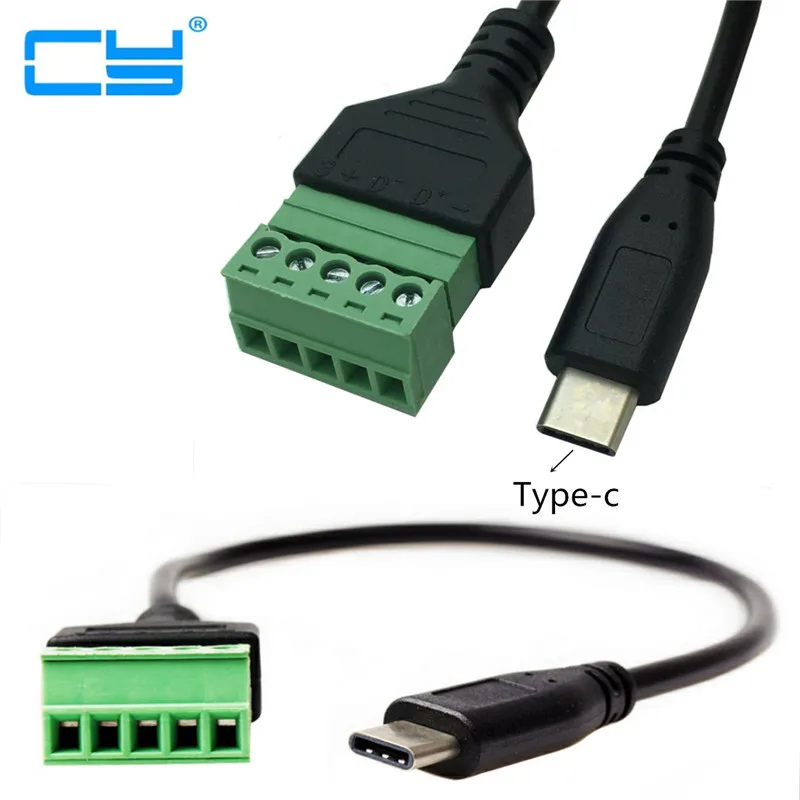 Comprar Tornillo de escudo USB 2,0 tipo c macho a 5 pines/vía hembra, terminales enchufables, cable adaptador de 0,3 m