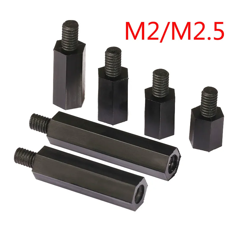 Comprar Tornillo de espaciado negro para placa base PCB, espaciador de nailon fijo, M2/M2.5 * L + 6mm, 50 unidades