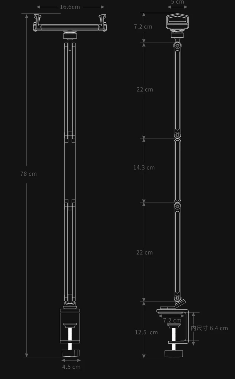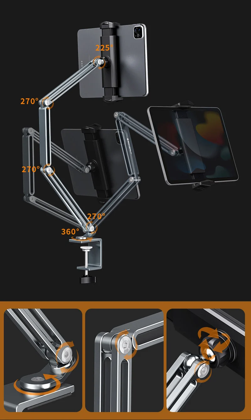 Screw fastening Side-clip 360° Rotation Adjustable height Phone Tablet