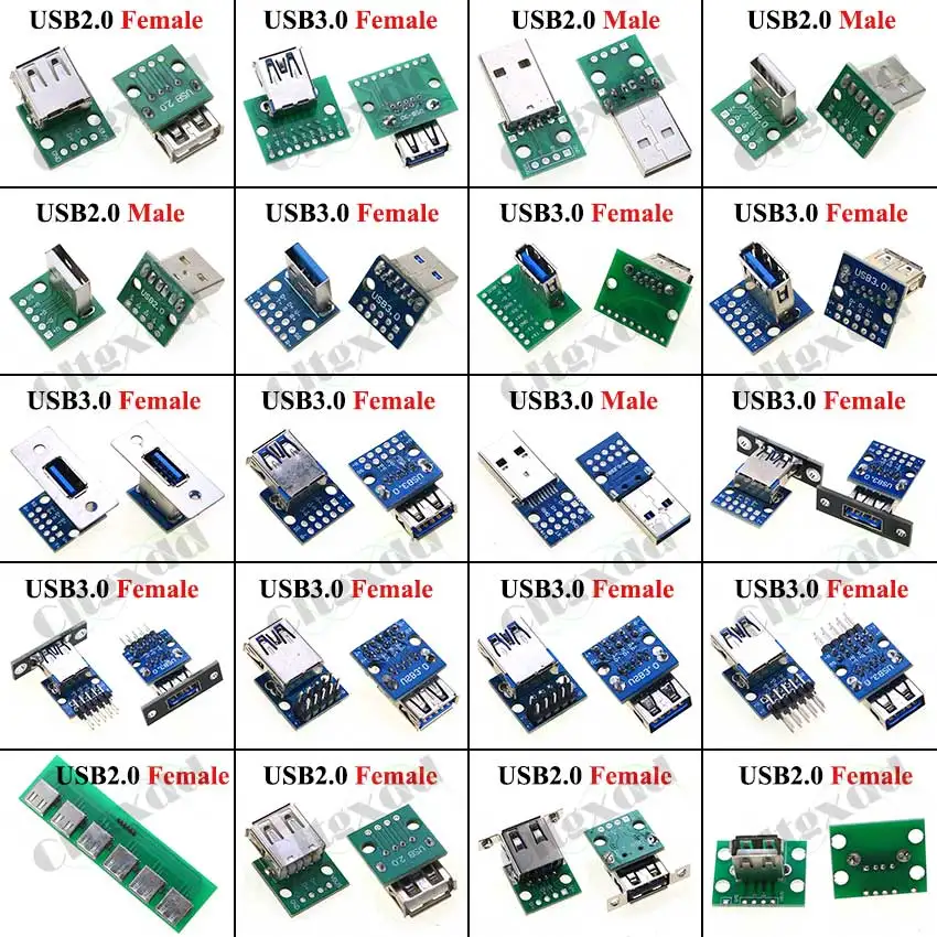 Tornillo macho y hembra USB tipo A 3,0, 2 piezas, agujero de fijación, cabeza USB, placa de soldadura Vertical, placa de prueba, Conector de placa de prueba
