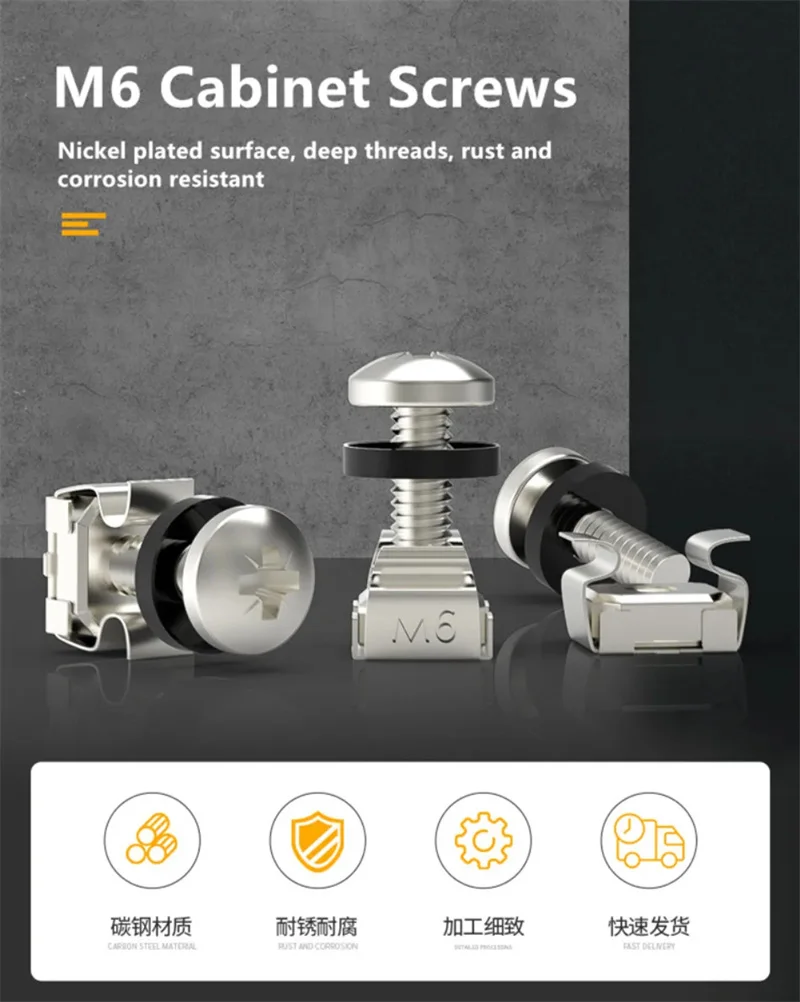 Comprar Tornillos de armario de M6 x 16mm, M6 x 12mm, jaula de montaje en estante, tuercas, tornillos y arandelas para estantes de distribución de chasis de servidor de red, enrutadores