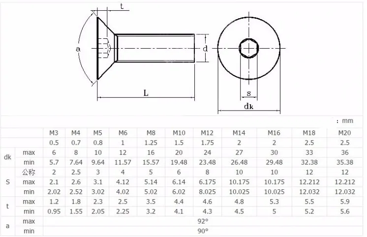 Comprar Tornillos avellanados hexagonales de acero inoxidable 304, tornillos de cabeza plana, M2, 5, M3, M4, 50 Uds.