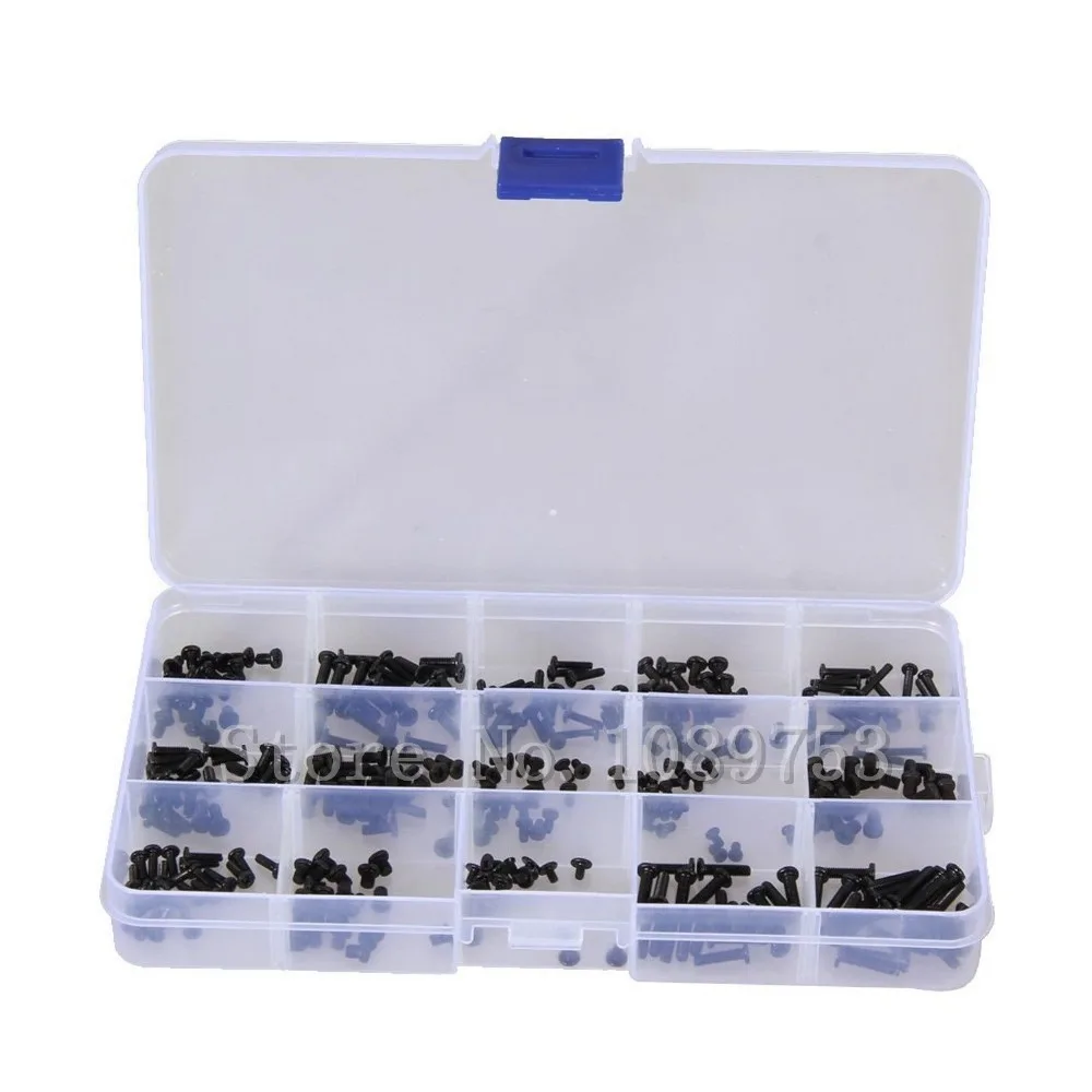 Juego surtido de tornillos de 300 piezas, caja de almacenamiento incluida