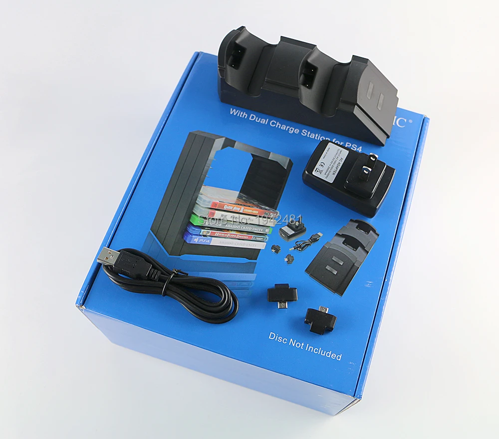Comprar Torre de almacenamiento de discos multifuncionales para videojuegos, soporte de controlador de juego Dual con estación de carga para PS4, 1 Juego