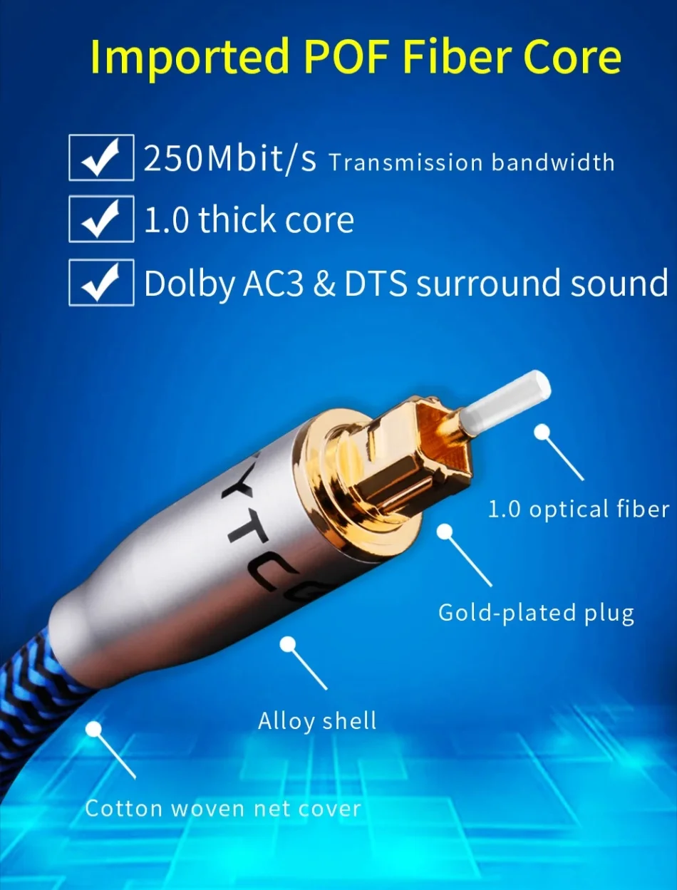 Toslink SPDIF Cable de Audio óptico Digital HiFi para amplificador TV reproductor Blu-ray Xbox 360 Cable de altavoz de sonido 7,1 Cable de fibra azul