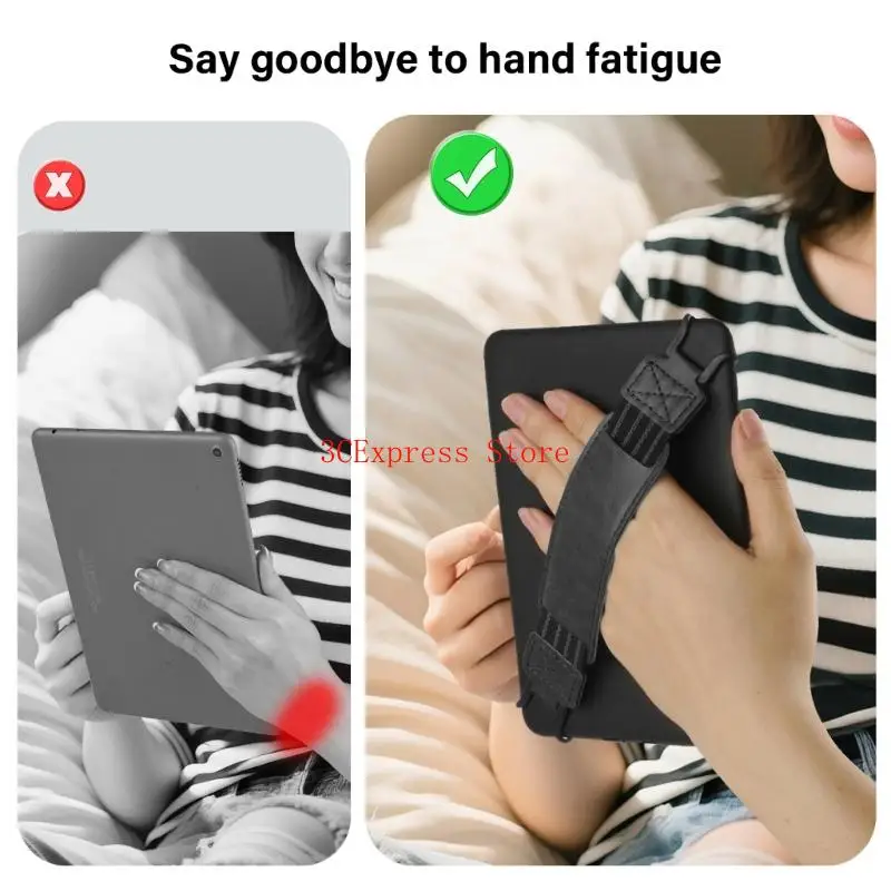Características:OOTDTYLa correa de manos antideslizante universal para tabletas se adapta a lectores y tabletas de 6 a 7 pulgadas, lo que ofrece protección contra caídas con su material de PU duradero y hebillas de ajuste rápido.
