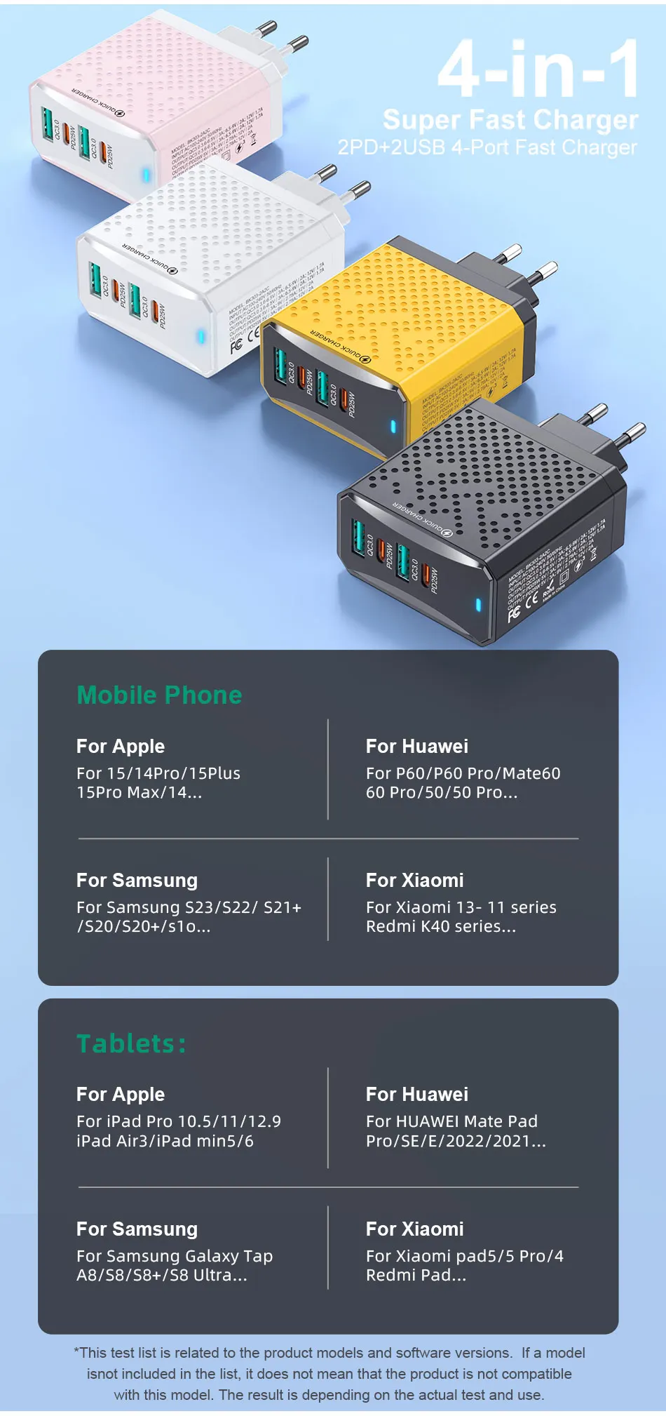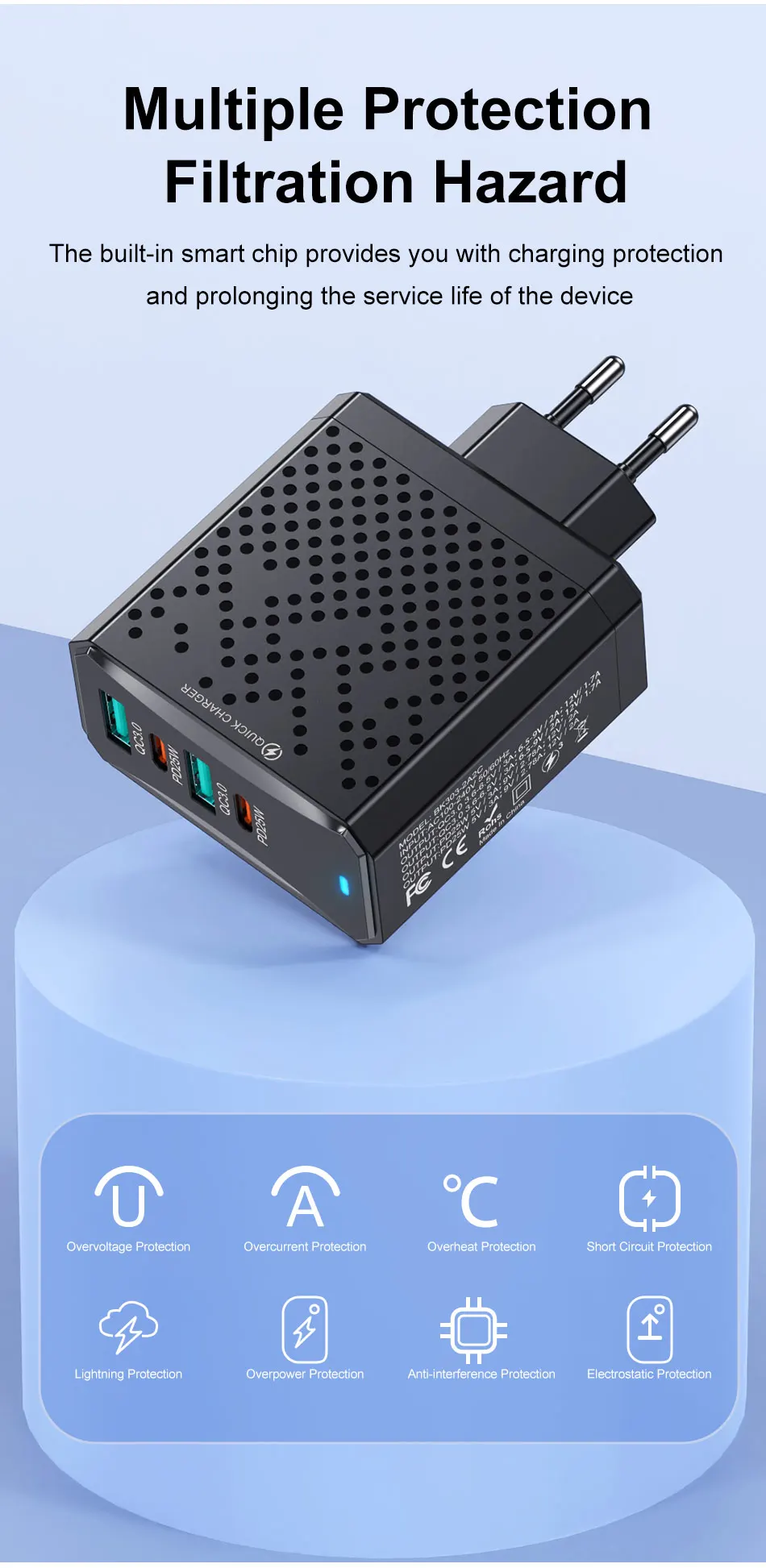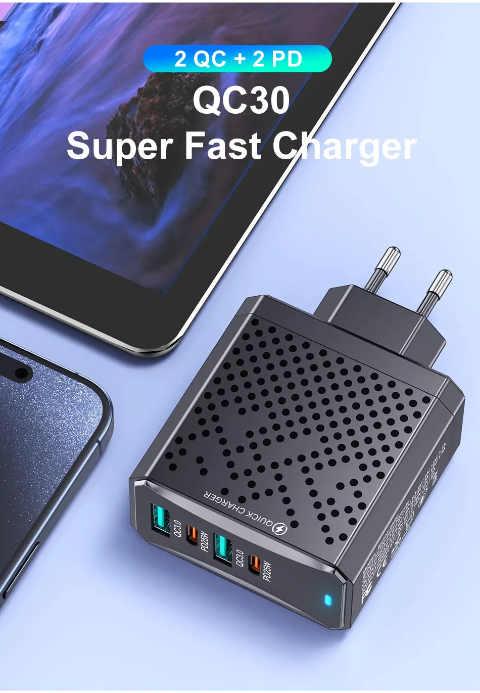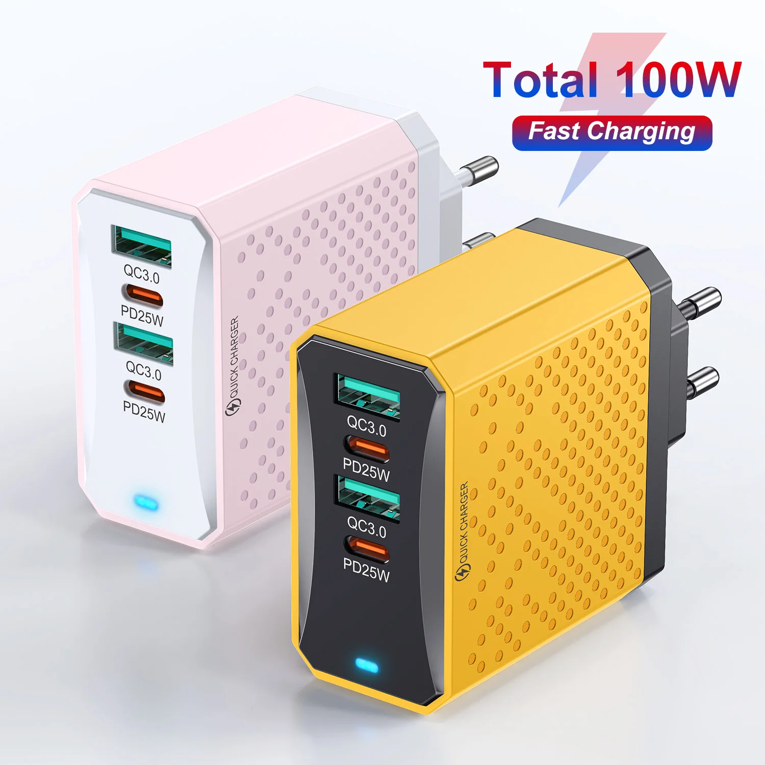 Comprar Total 100W 4 puertos USB QC3.0 PD cargador tipo C USB cargador de teléfonos móviles adaptador de carga rápida para iPhone Samsung Huawei Xiaomi