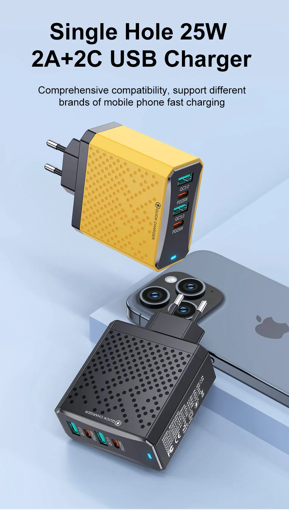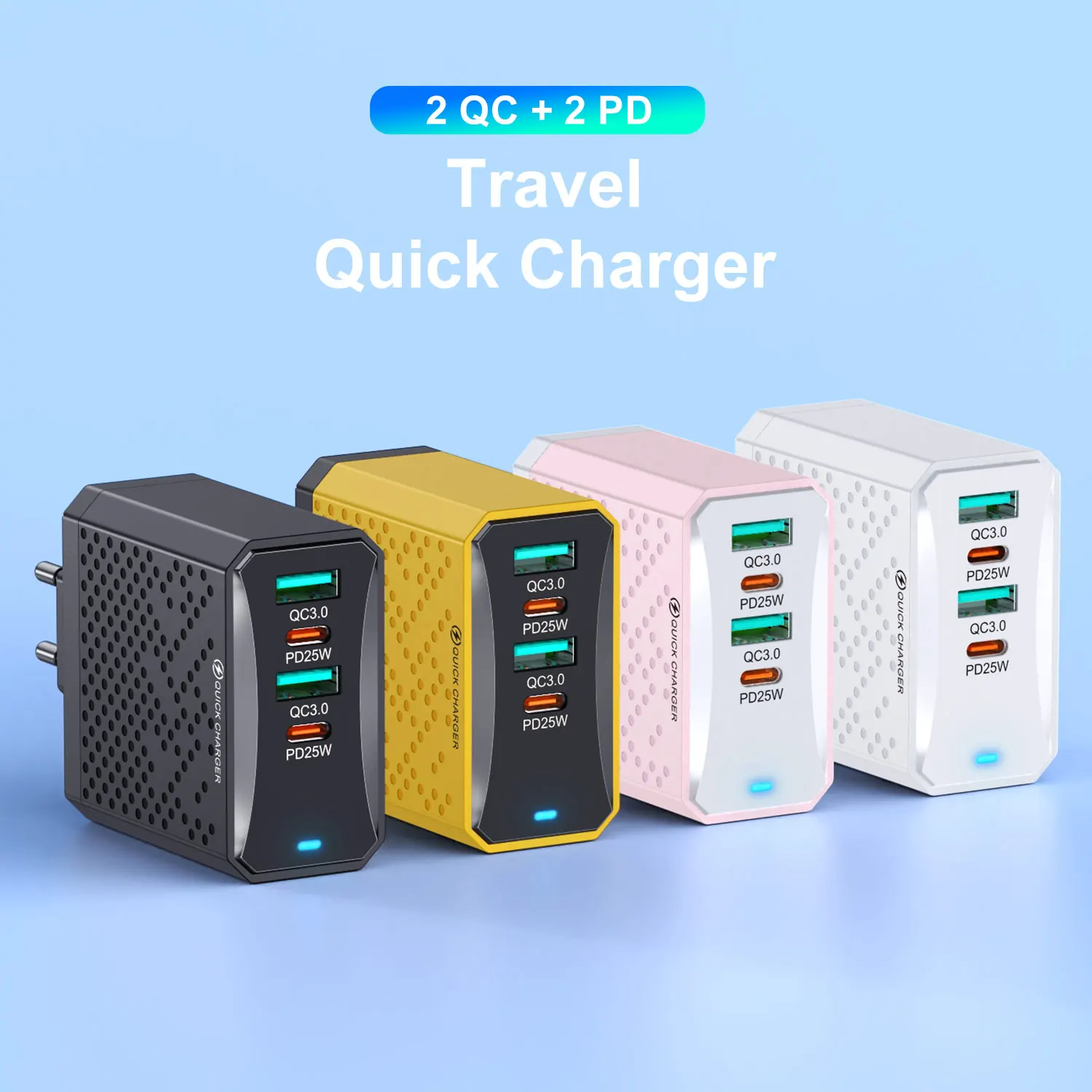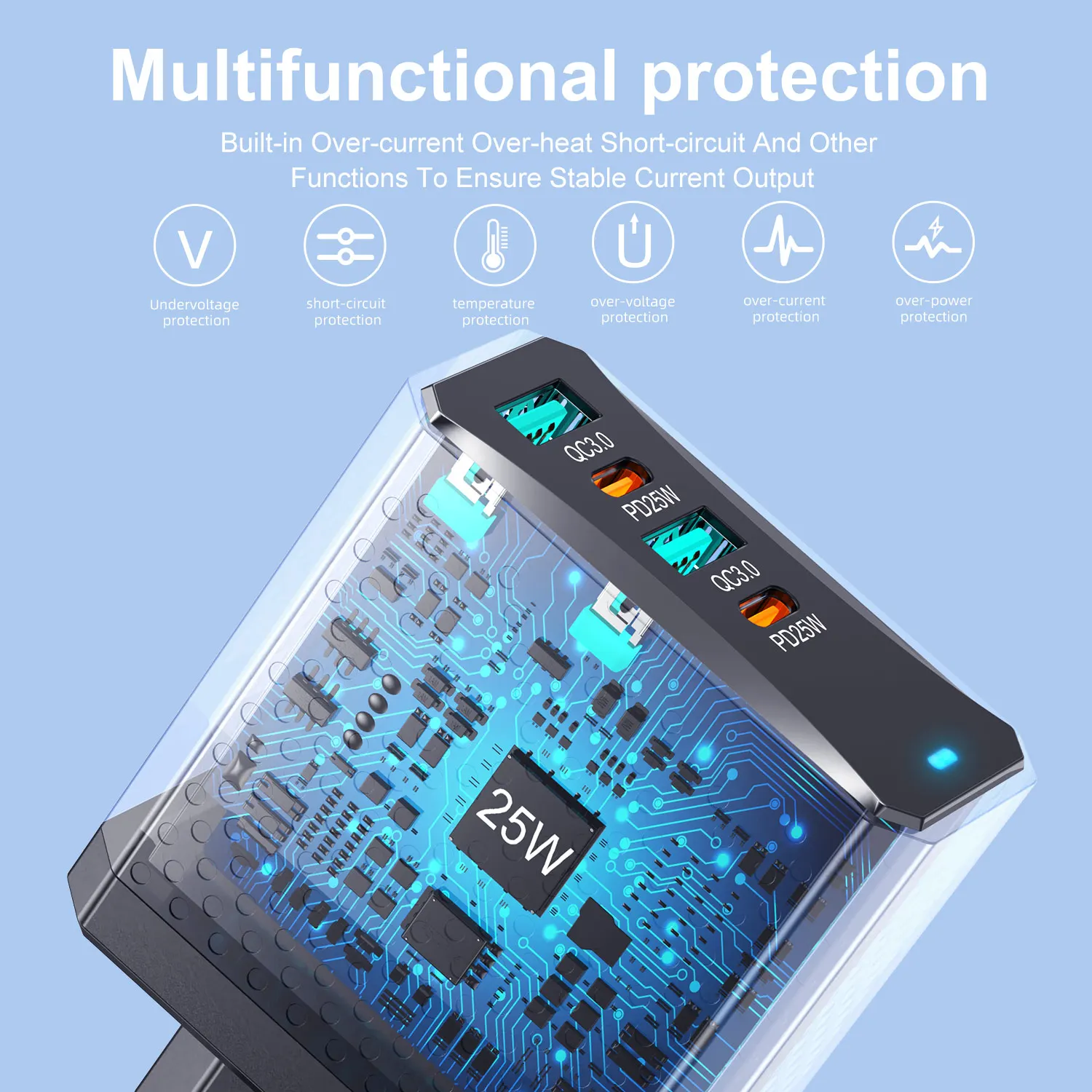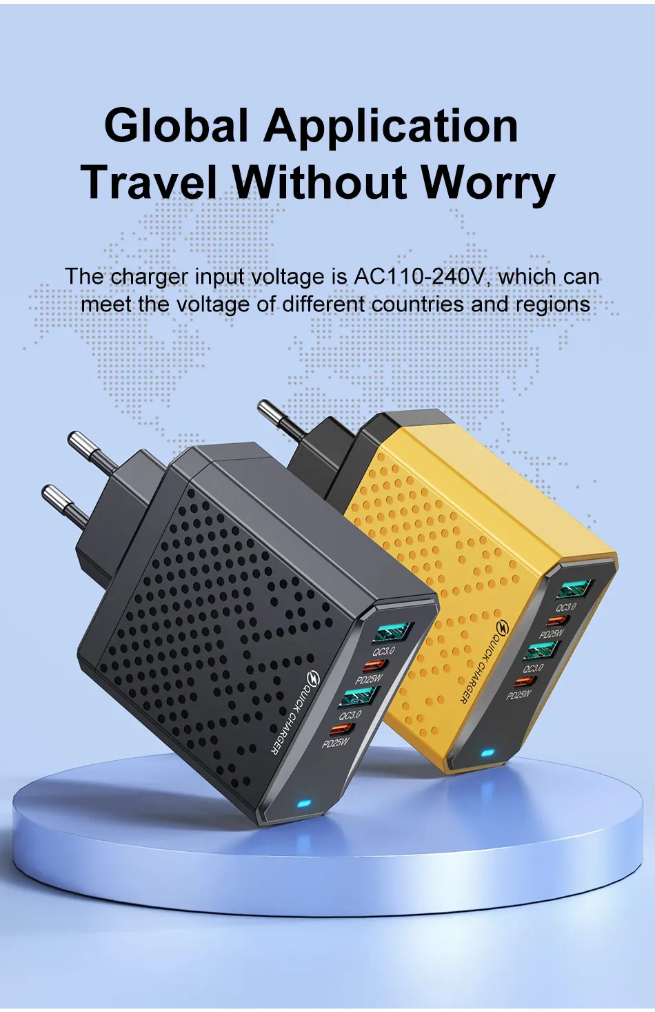 Comprar Total 100W 4 puertos USB QC3.0 PD cargador tipo C USB cargador de teléfonos móviles adaptador de carga rápida para iPhone Samsung Huawei Xiaomi