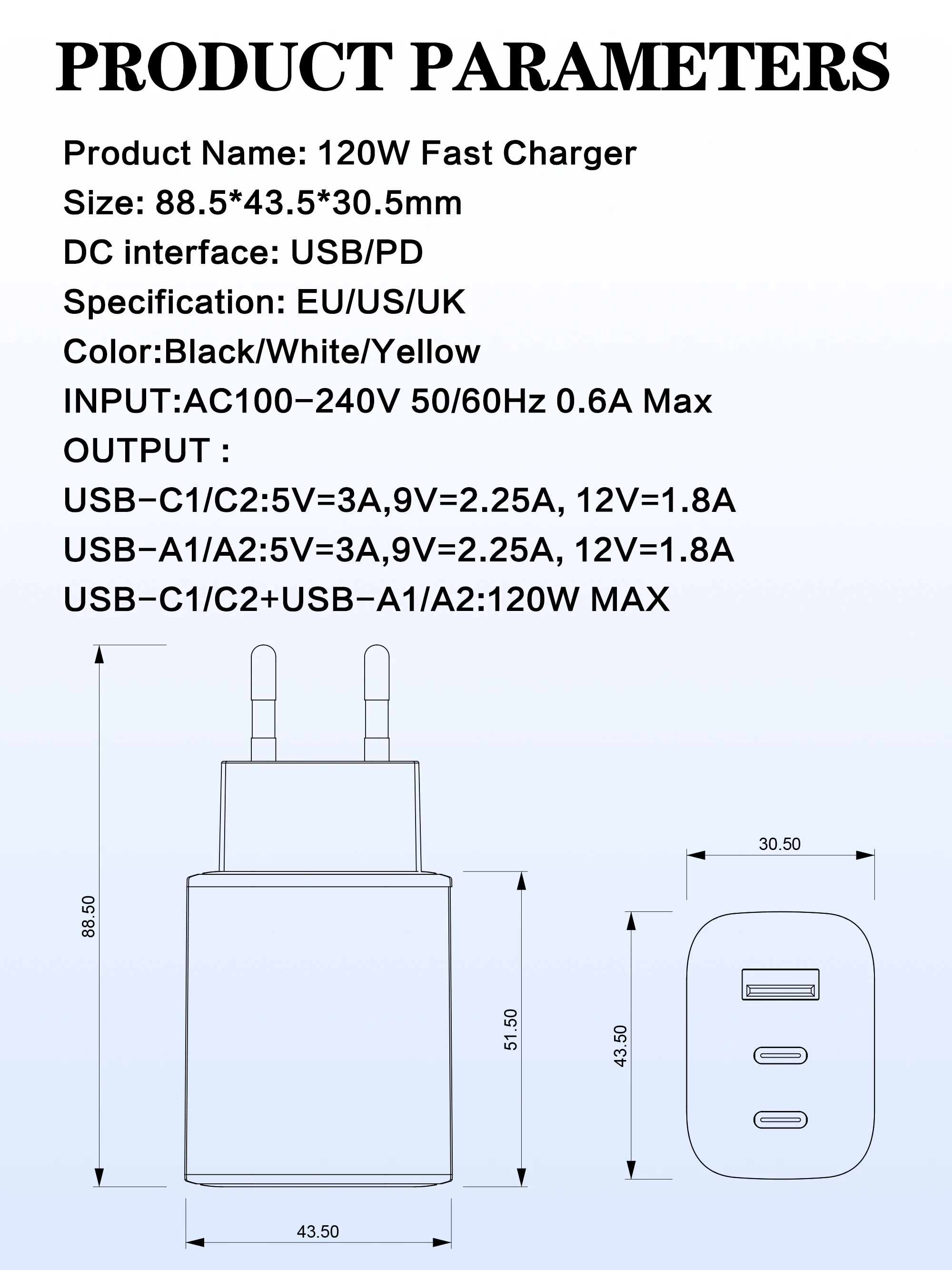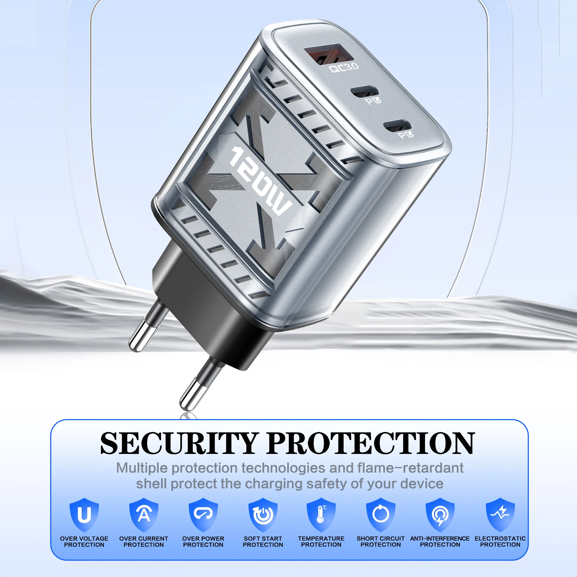 Comprar Total 120W carga rápida 3 puertos USB C PD cargador carga rápida 3,0 USB tipo C adaptador de teléfono móvil para iPhone 16 Samsung Xiaomi