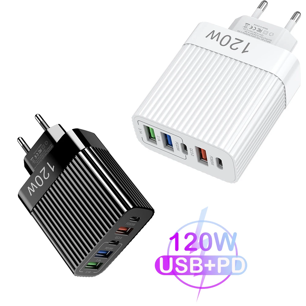 Comprar Total 120W USB carga rápida 5 puertos cargador rápido 3,0 adaptador de teléfono móvil para iPhone 15 Pro Samsung Xiaomi Huawei carga de pared