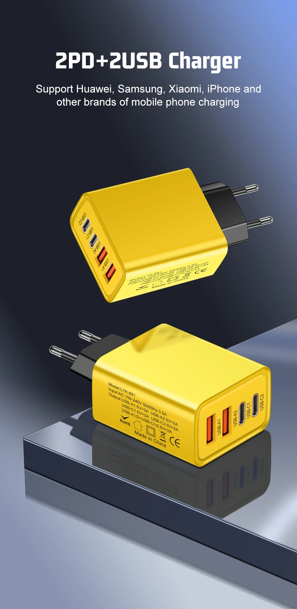 Usb-a1/2 + usb-c1/2:5v=2a